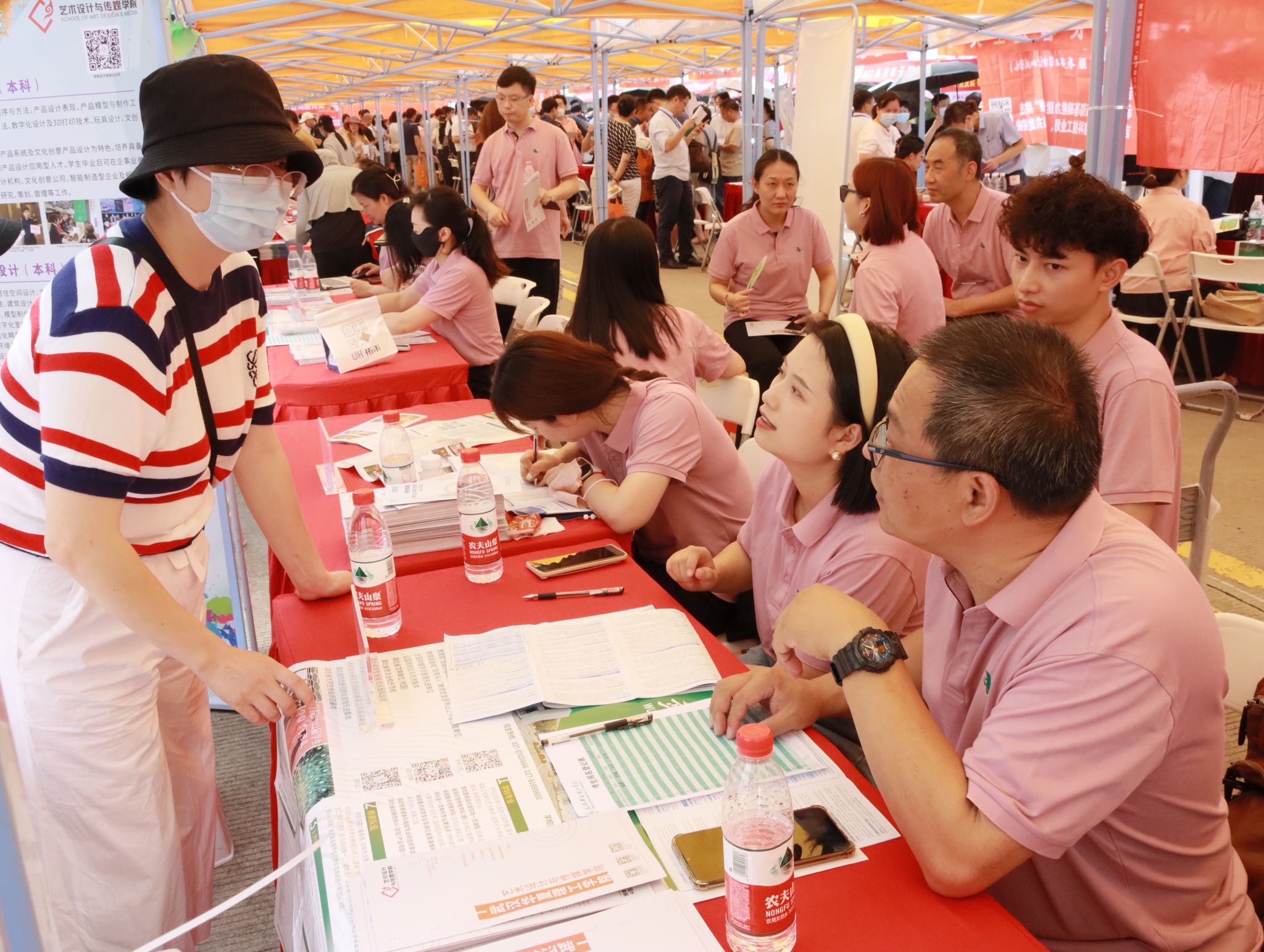 “学校录取计划有多少?”“哪些专业适合学理科的孩子?”“学校住宿条件如何?”炎炎夏日,抵挡不住考生与家长的热情。咨询会现场人气火爆,各高校展位前人流涌动,考生和家长摩肩接踵、络绎不绝。