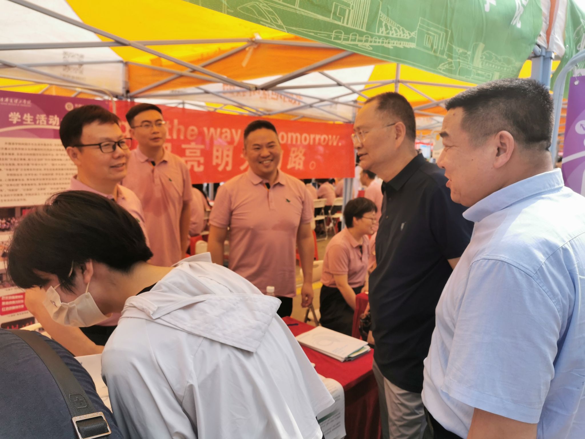 上午9时,校长吴永桥、党委书记丁德智等校领导一行来到咨询会现场,与各高校代表及招生人员亲切交谈,同考生及家长悉心交流志愿填报事宜。