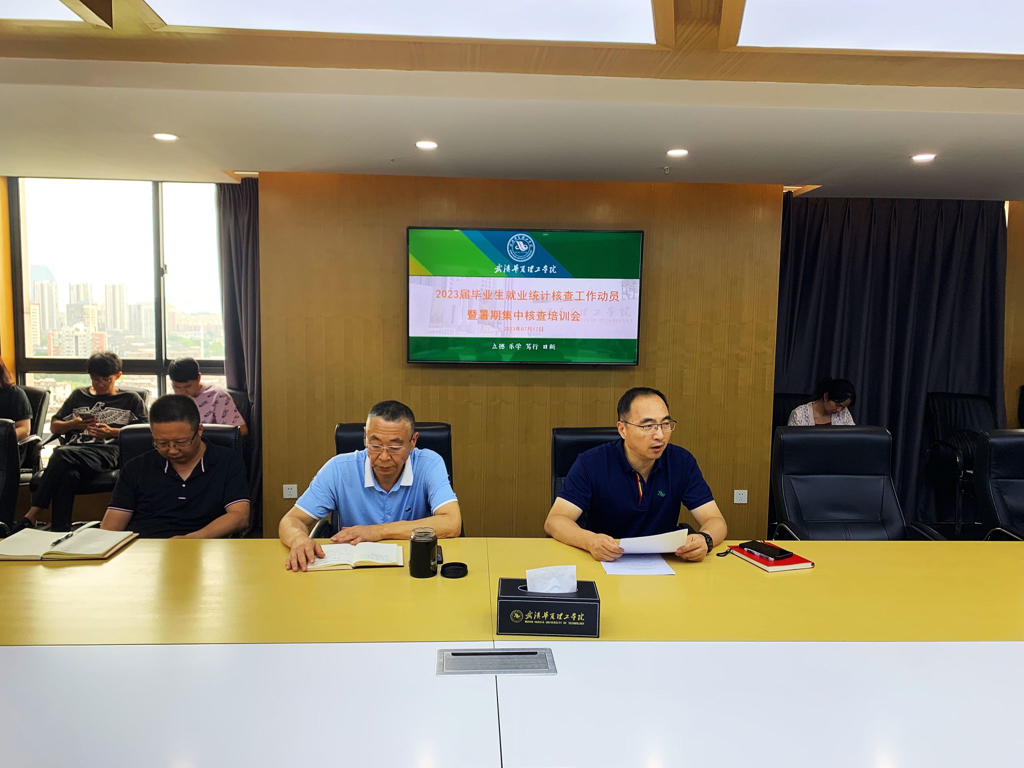 为进一步做好2023届毕业生就业工作,7月17日下午,学校召开2023届毕业生就业统计核查工作动员暨暑假集中核查培训会。校党委副书记、副校长李海民出席会议,就业创业中心、各学院党总支书记、组织员、学工办主任、2023届毕业班辅导员参加会议。会议由就业创业中心主任李家梁主持。