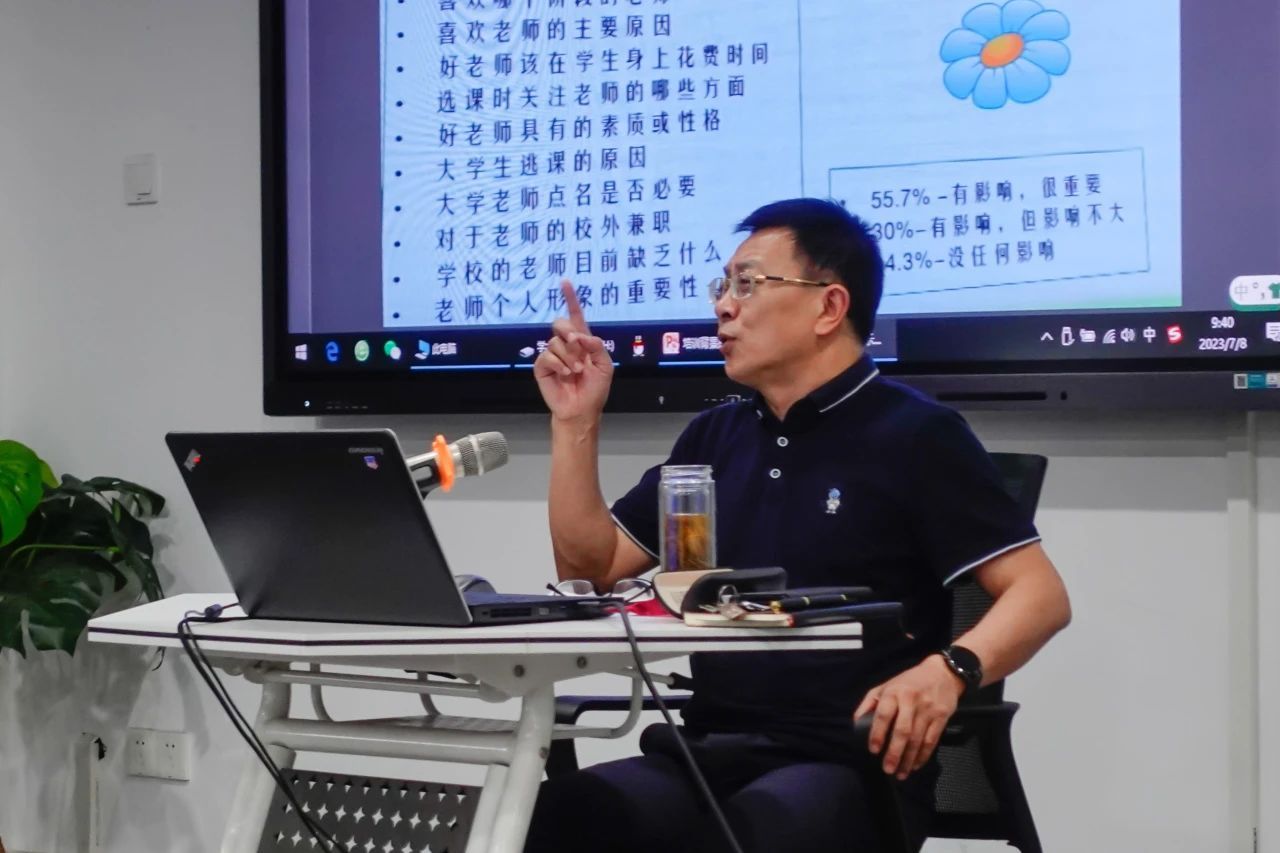 马克思主义学院名誉院长朱喆教授为老师带来了《学高为师 身正为范》的专题讲座。他以“如何成为一名卓越的大学教师”为核心,希望老师们深刻认识新时代教师师德的总体要求,树立正确的政治立场,在宗教、法律、道德、历史、社会等问题上,谨言慎行,立场正确,同时用积极、客观的眼光讲事实,用发展、均衡的眼光看问题,用丰富、多样的方式传授知识。他希望所有教师站在历史和未来的交汇点上,强化自身的历史意识、时代意识、世界意识、人本意识、自我意识。