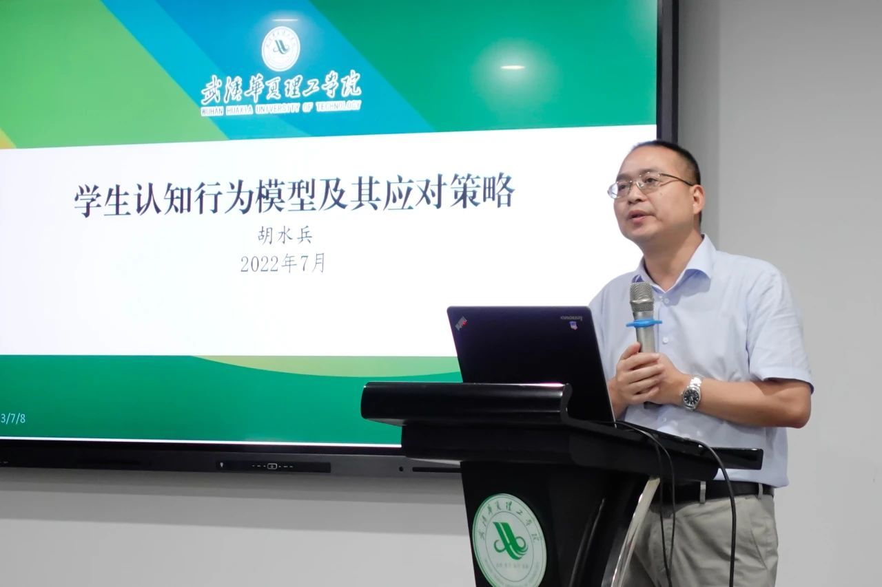 校长助理、党政办公室主任胡水兵通过《学生认知行为模型及其应对策略》,详细分析了学校生源情况、学生定位,以及学校对学生的教学目标。他希望大家教育学生要“因材施教,有教无类”,要坚信人性中向上向善的力量,塑造学生自信心。