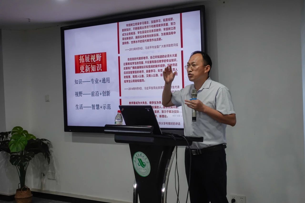 校长助理、教务部部长李猜以《规范教学 依法教学 提升质量》为题,从规范教学管理,提高教学质量的角度全方位解读了学校的教学管理制度。她着重强调了“专业人才培养方案”和“本科教学环节质量标准”的重要性,对新时代的教师教学提出了具体的建议,希望教师了解学校的人才培养方案,了解一流课程标准,了解教学评比与激励机制。