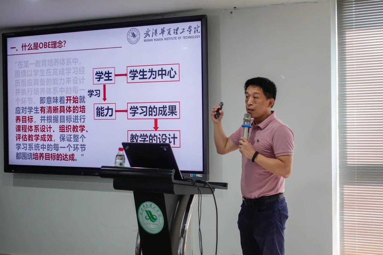 智能制造学院副院长齐洪方老师的《基于OBE理念的课程设计》让老师们了解什么是“以学生为中心、以产出为导向、持续改进”的教育理念。他以怎样才能做到不被“人工智能”取代的大学教师为题引入思考,提出要做一位以学生为中心的老师是一个持续的过程,不仅要有扎实的专业素养,还要做好学生的引导者,关注学生的学习过程。