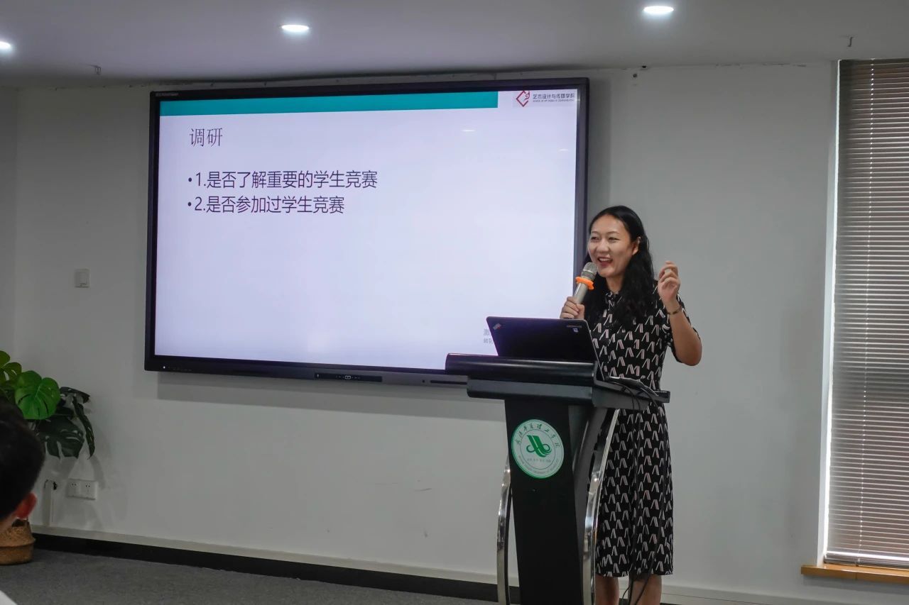 艺术设计与传媒学院副院长张天洁以《多媒体教学课件设计》教学课件为例,详细阐述了各指标内容所占分值,强调了重难点,也分别就教学课件内容进行具体说明。她同时对课件细节提出了建议,给大家分享了不同字体资源、课件网站资源、课件制作以及各类比赛的信息资源。