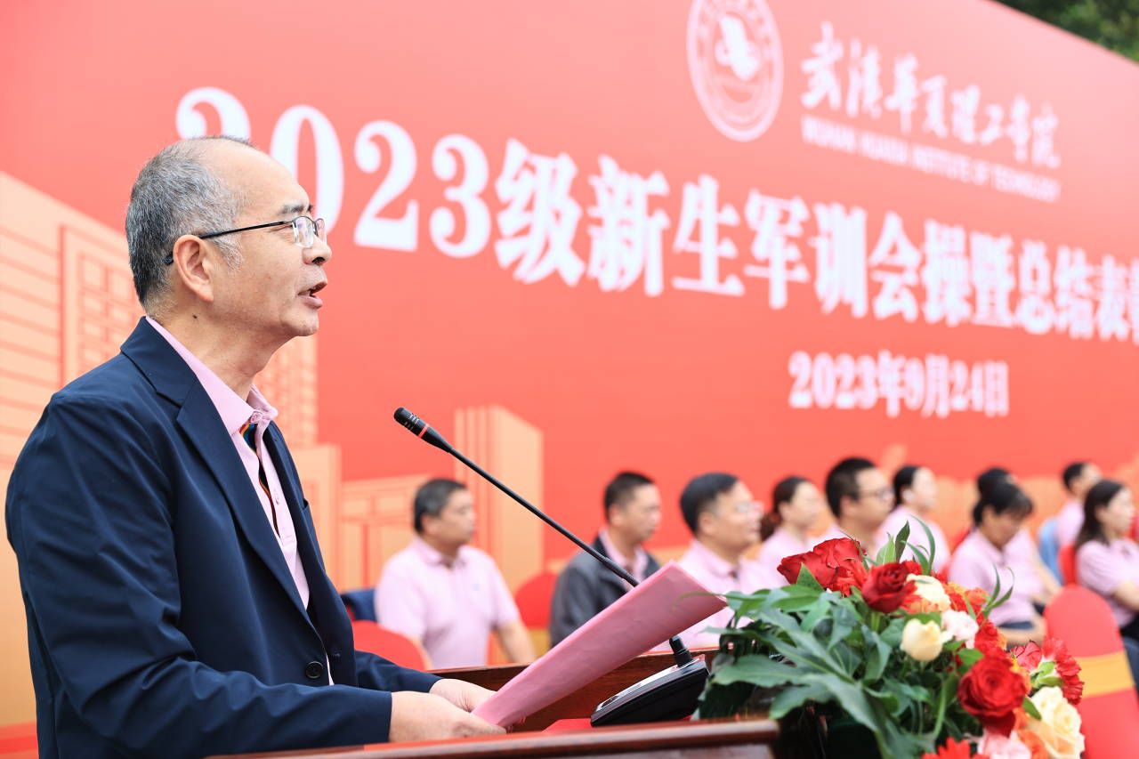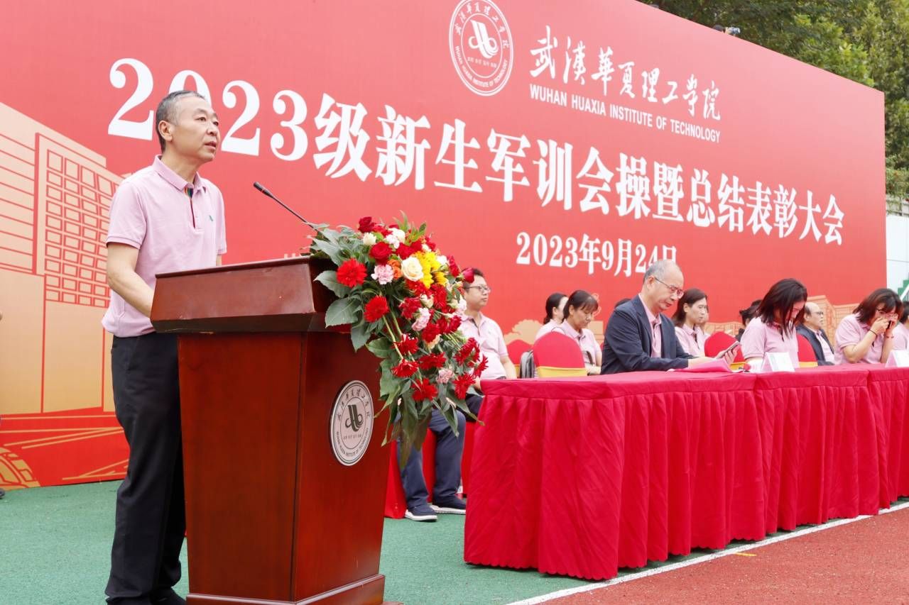 党委副书记、副校长李海民代表学校向参训的教官表示衷心感谢,向圆满完成军训任务的同学们表示热烈祝贺。他提到,本次军训在学校军训工作领导小组、有关部门、各学院和全体教官的共同努力下,圆满完成各项军训任务。他对即将正式迈入大学生活的同学们提出三点建议:要志存高远,树立正确的学习观念;要发奋努力,养成端正的学习态度;要知行合一,掌握系统的学习方法。