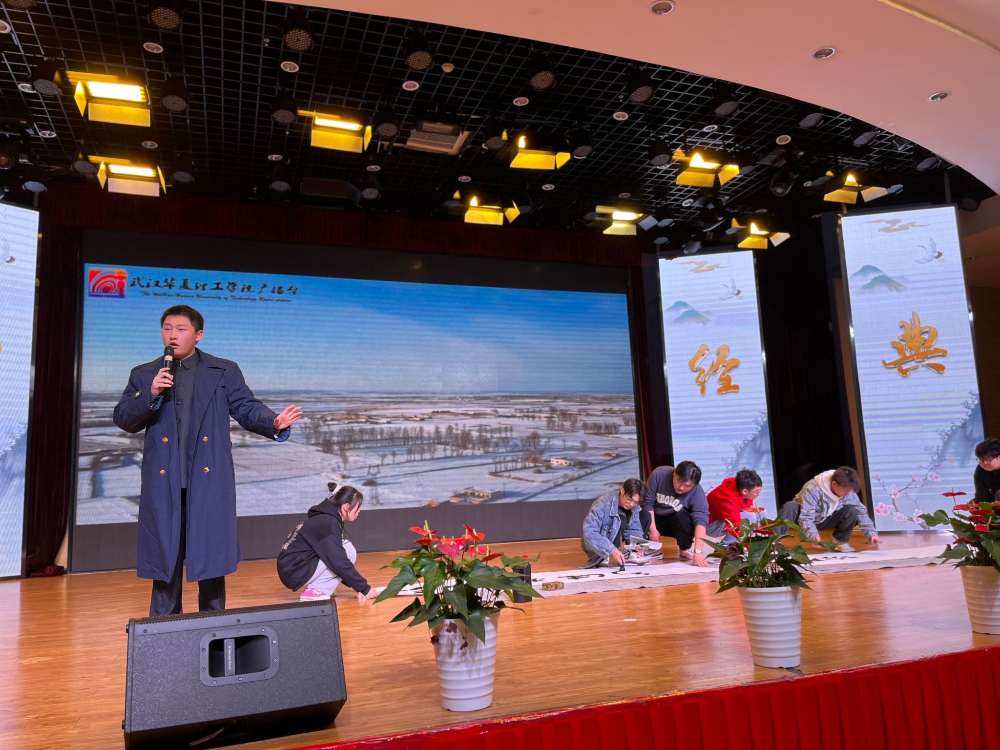 总决赛共有9组作品入围。比赛中,参赛选手们满怀热情地诵读了系列经典文章。“江山如此多娇,引无数英雄竞折腰。”余景琦激昂的朗诵《沁园春·雪》拉开比赛帷幕。他用湖南方言展示了大气磅礴、旷达豪迈的意境。表演过程中,省级书法新人奖获得者钟一垓、周轩同学现场创作的六米书法长幅作品“江山如此多娇”“千里冰封 万里雪飘”,带观众直观体会到诗人的伟大抱负和坚定信念。