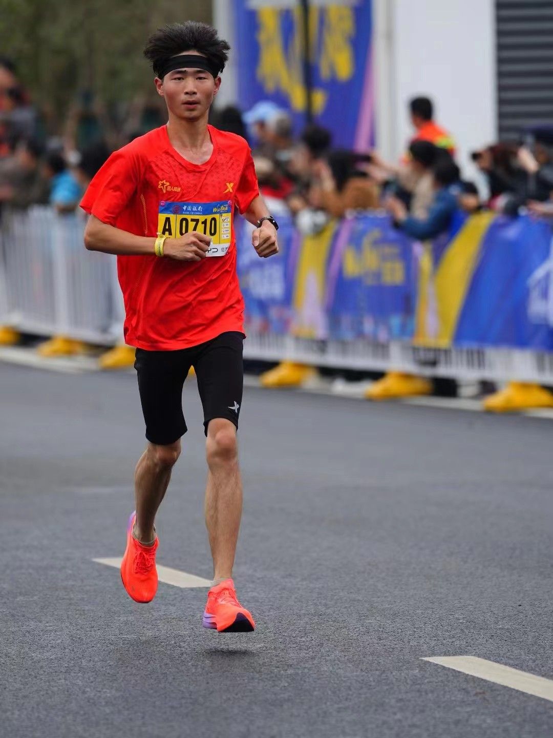 来自信息工程学院计算机1223班的王佳鑫同样是第一次参加武汉马拉松,但这是他个人第二场全马。“今年武汉马拉松的天气特别好,气温很舒适,东湖路段樱花花香四溢,跑过三桥三镇感受到了整个武汉的魅力。现场氛围也很给力,一路上群众和志愿者的加油呐喊声此起彼伏,欢声不断。这次2024武汉马拉松我的成绩是两小时51分钟15秒,不仅成功刷新了我的全马成绩,还达标全马国家二级运动员。冲过终点的那一刻,我深刻感觉到生活中有些事情,只要你制定一个目标并且努力地坚持下去,一定能够实现。”