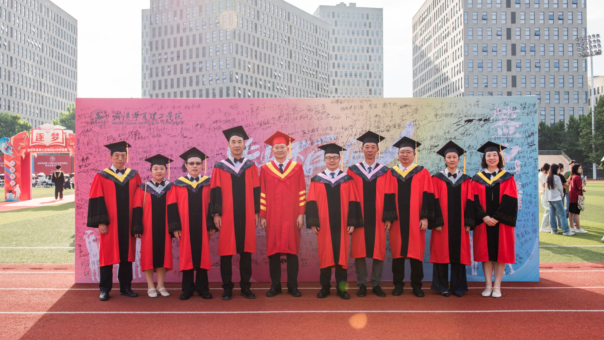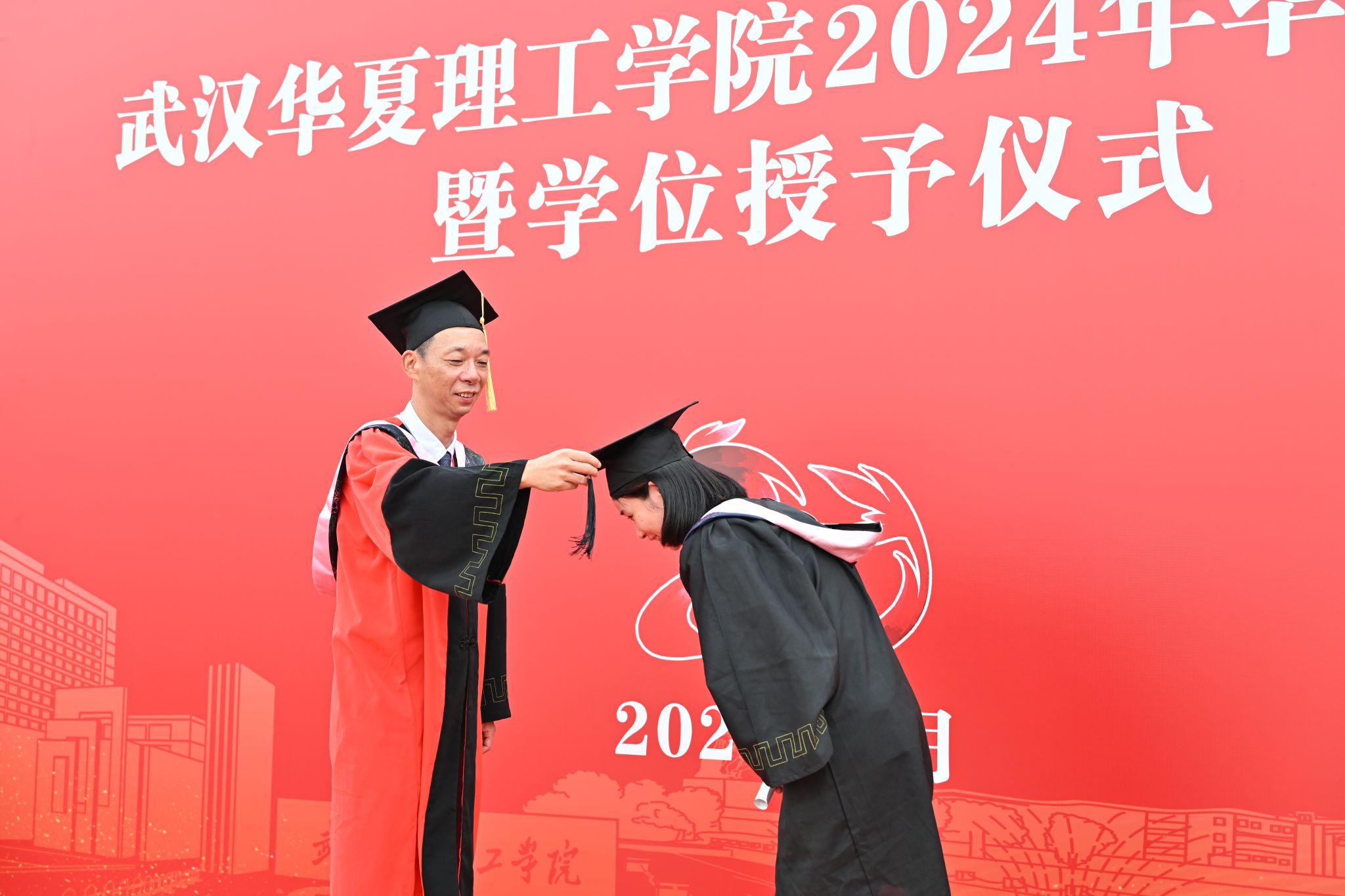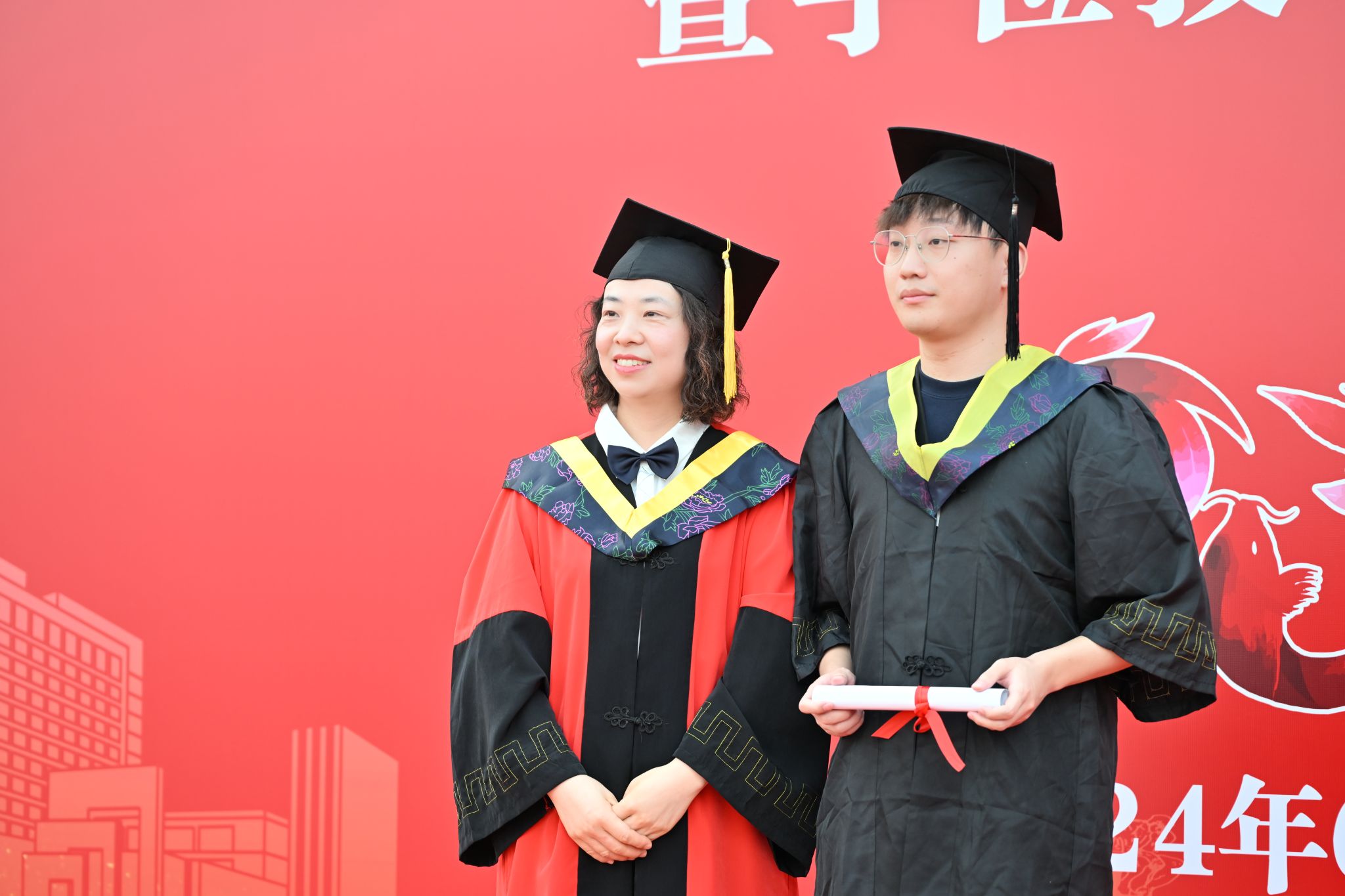 学位授予环节,吴永桥和各学院院长为依次上台的毕业生们逐一拔穗正冠,与大家亲切合影留念。