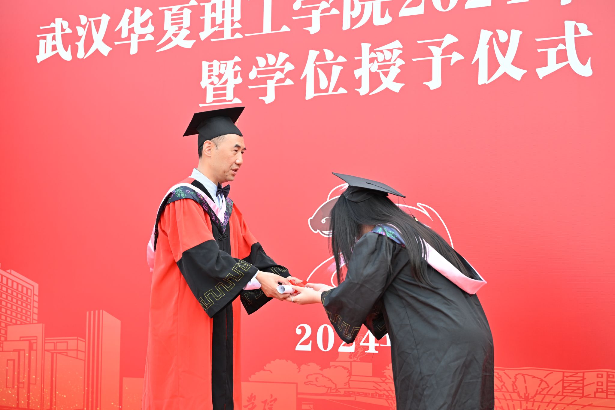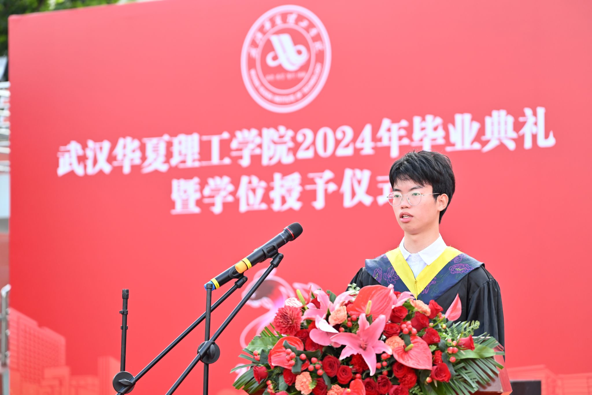 2024届毕业生代表、智能制造学院2020级本科生罗仙明深情回顾了大学四年在华夏的美好岁月以及在思想、学习、工作、竞赛、考研等方面取得的成绩,表示学校的良好学习氛围和优秀师资力量,为他提供了宝贵的学习资源和成长平台。他用“不畏浮云遮望眼,只缘身在最高层”与毕业生们共勉,希望大家带着母校的祝福,勇敢地迈向人生的下一个阶段,怀揣梦想,坚定前行。