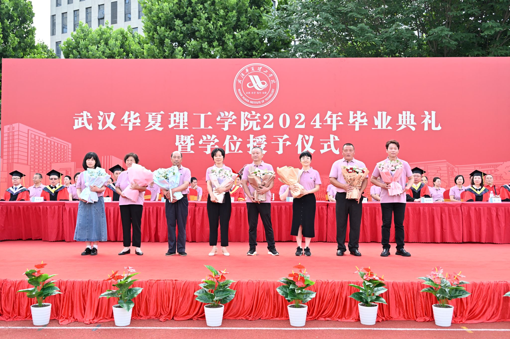 毕业生代表将手中的鲜花献给教职工,表达莘莘学子对他们的感恩和爱戴之心。