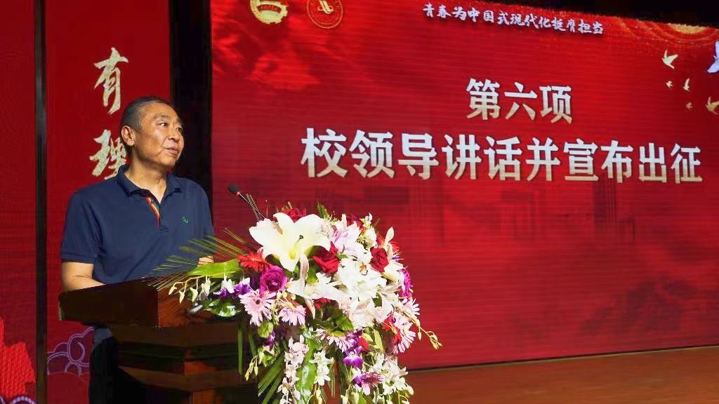 李海民为实践队授旗并作动员讲话。他代表学校向即将奔赴全国各地参加社会实践的师生们表示亲切的问候,向精心组织、周密部署本次活动的相关职能部门和学院表示衷心的感谢。他向实践队员们提出三点希望:一是聚焦主责主业,在实践中坚定理想信念、书写青春华章;二是注重统筹协调,在实践中创新成果转化、放飞青春梦想;三是坚持求真务实,在实践中扎实服务基层、展现青春风采,在实践过程中彰显出新时代大学生笃行实干、开拓进取的良好精神风貌。他强调,学校相关部门和各学院要认真抓好安全教育工作,始终把师生安全放在第一位,完善应急机制;实践师生要增强安全意识,自觉遵纪守法,服从管理,统一行动,确保社会实践活动安全有序开展。
