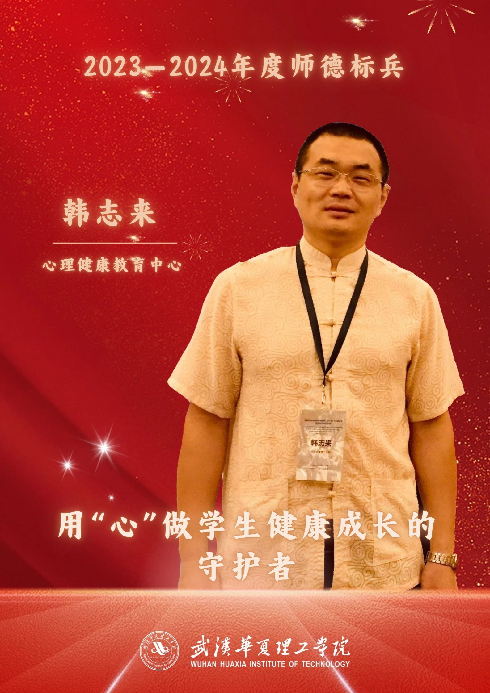 韩志来,男,心理健康教育中心主任。他着力打造心理危机干预四级预防体系,牵头建立健全了工作机制、师资队伍、教学体系、咨询服务、活动体系、危机干预、条件保障在内的心理健康教育工作平台,为平安校园保驾护航。学校心理健康教育工作的相关经验多次在省级会议上进行推广,学校顺利通过湖北省高校心理健康教育示范中心验收并挂牌。整合多方资源强化心理育人,连续8年担任中国计划生育协会“青春健康”同伴教育项目指导教师,连续7年担任中国性病艾滋病防治协会高校艾防项目指导教师。多次获得“华夏年度人物”等荣誉。