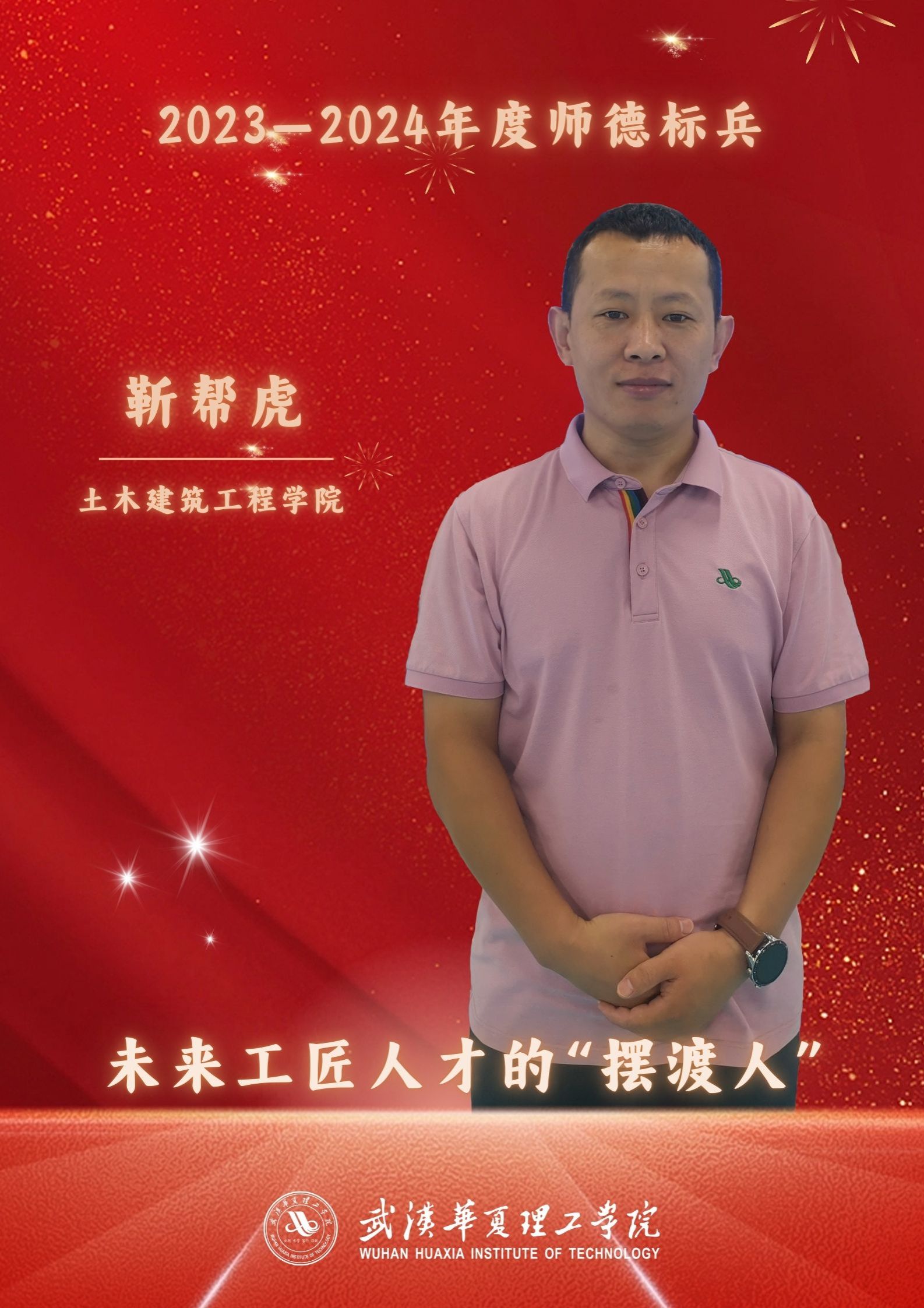 靳帮虎,男,中共党员,土木建筑工程学院实验中心主任、副教授。他将OBE教学理念贯穿教学始终,融入课程思政,深化学情分析,持续推进教学改革;主持名师工作室建设,带领学生参与多项横纵向课题,在完成实际工程项目的过程中,实现应用型技术人才的培养;构建了大学生结构设计创新平台,成为创新实践教育、教学改革的重要途径。组织承办了第十届湖北省大学生结构设计竞赛,被邀在第一届结构设计竞赛研讨会上作主题报告,为全省同类高校唯一,打造出了结构竞赛中的华夏品牌。曾获学校教学成果奖三等奖,“华夏年度人物”“优秀干部”“年度考核领航人物”“优秀共产党员”“优秀导师班主任”等荣誉,指导学生获得全国大学生结构设计竞赛一等奖等10余项。
