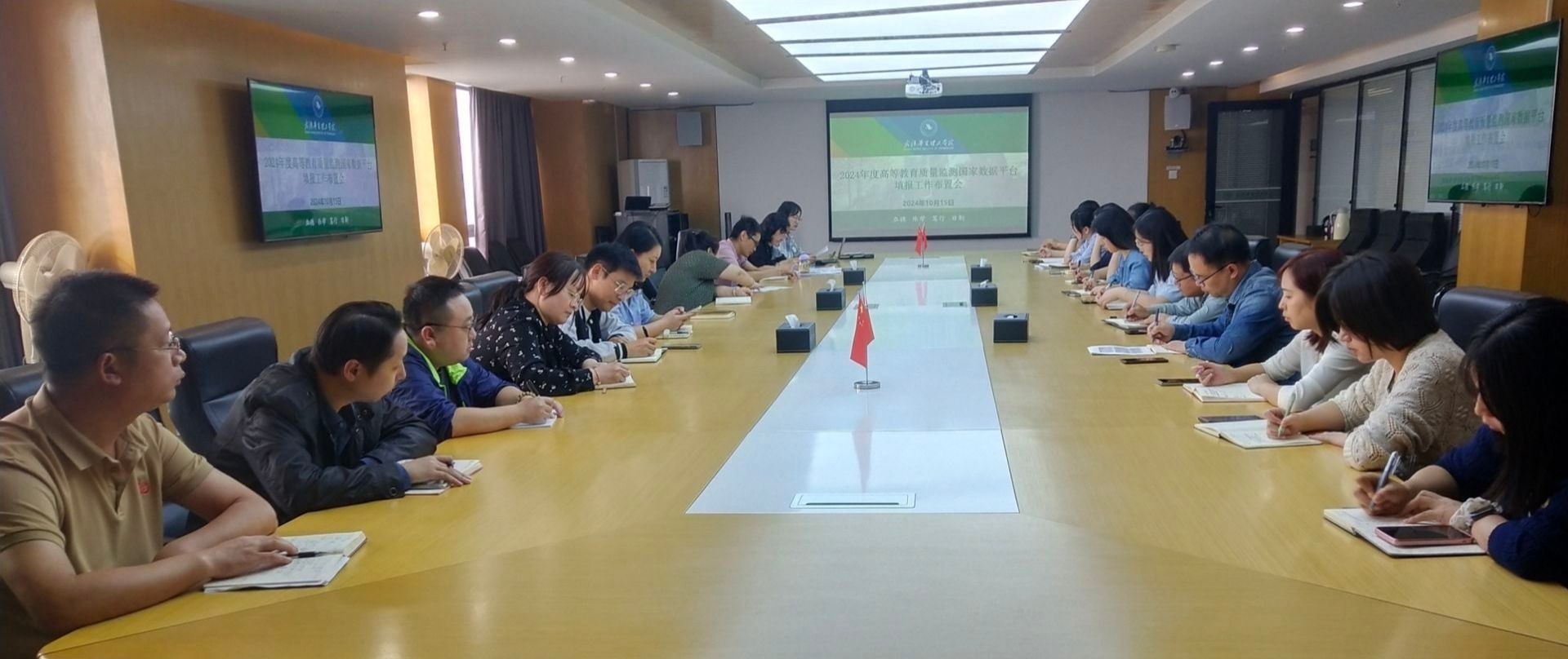 为进一步强化本科教育教学质量常态监测机制,迎接本科教育教学合格评估,10月15日上午,学校在综合楼1402会议室召开高等教育质量监测国家数据平台2024年监测数据填报工作布置及培训会。副校长李猜,相关部门负责人及填报人参加。会议由质量监测与评估中心主任梁梦凡主持。