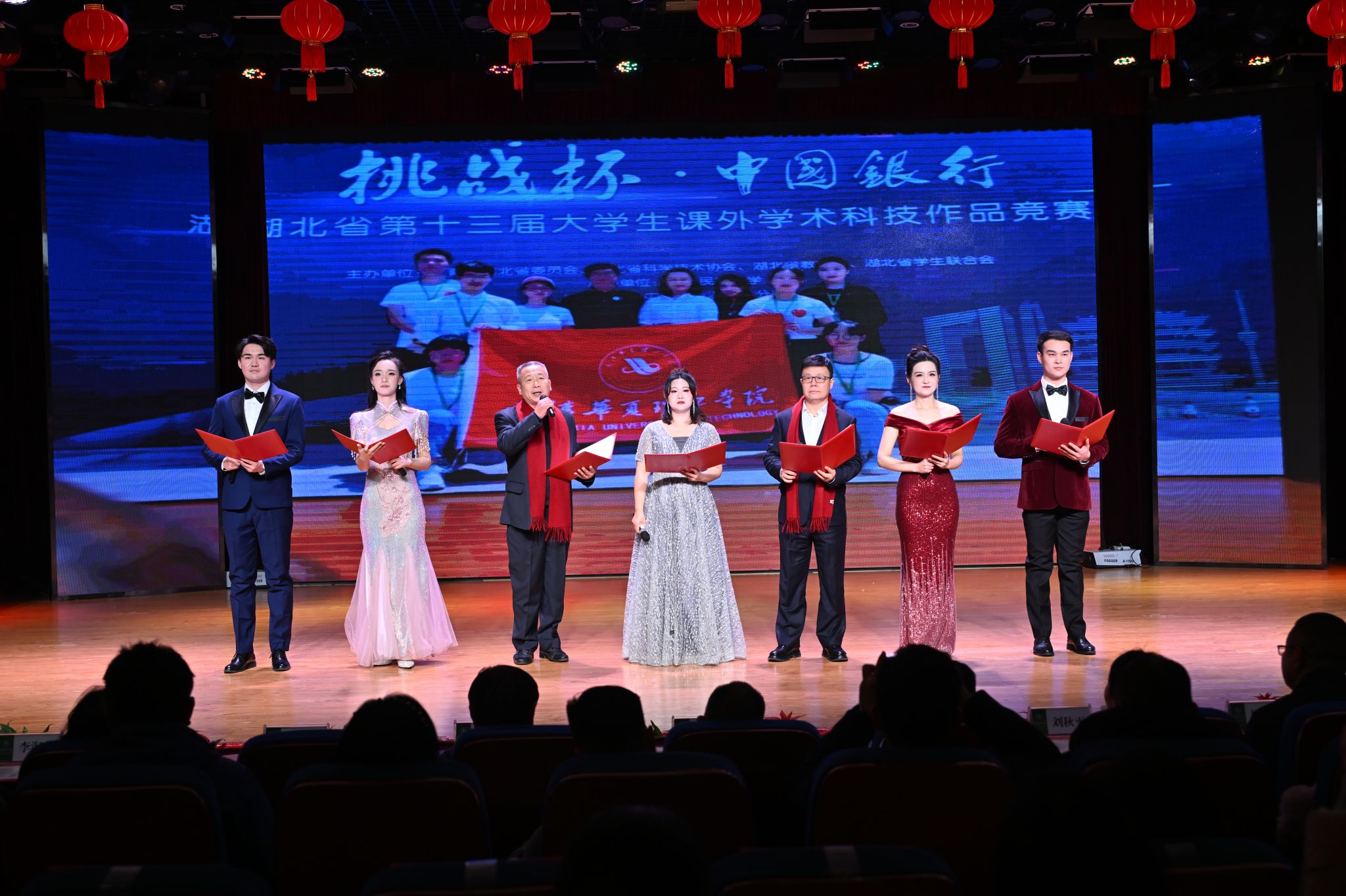 《九龙送祝福》抽奖环节压轴出场。各学院院长和院党总支副书记依次登台,为观众精心送上“平安”“欢乐”“喜庆”“发财”等主题的祝福,并现场随机抽取幸运儿,为他们送上空气炸锅、行李箱、料理机等丰富实用的奖品,教职工们在欢声笑语中收获满满的惊喜和幸福。