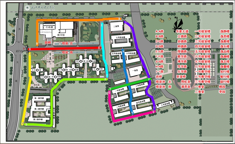2017年武汉华夏理工学院校园道路及建筑物命名方案征集活动现已结束。本次活动共收到投稿方案三百多套,含校园主干道、教学楼、学生宿舍、喷泉池及拱桥、食堂命名方案共计1000余件。经登记整理、评审小组初审、专家论证,现将拟命名方案公示如下: