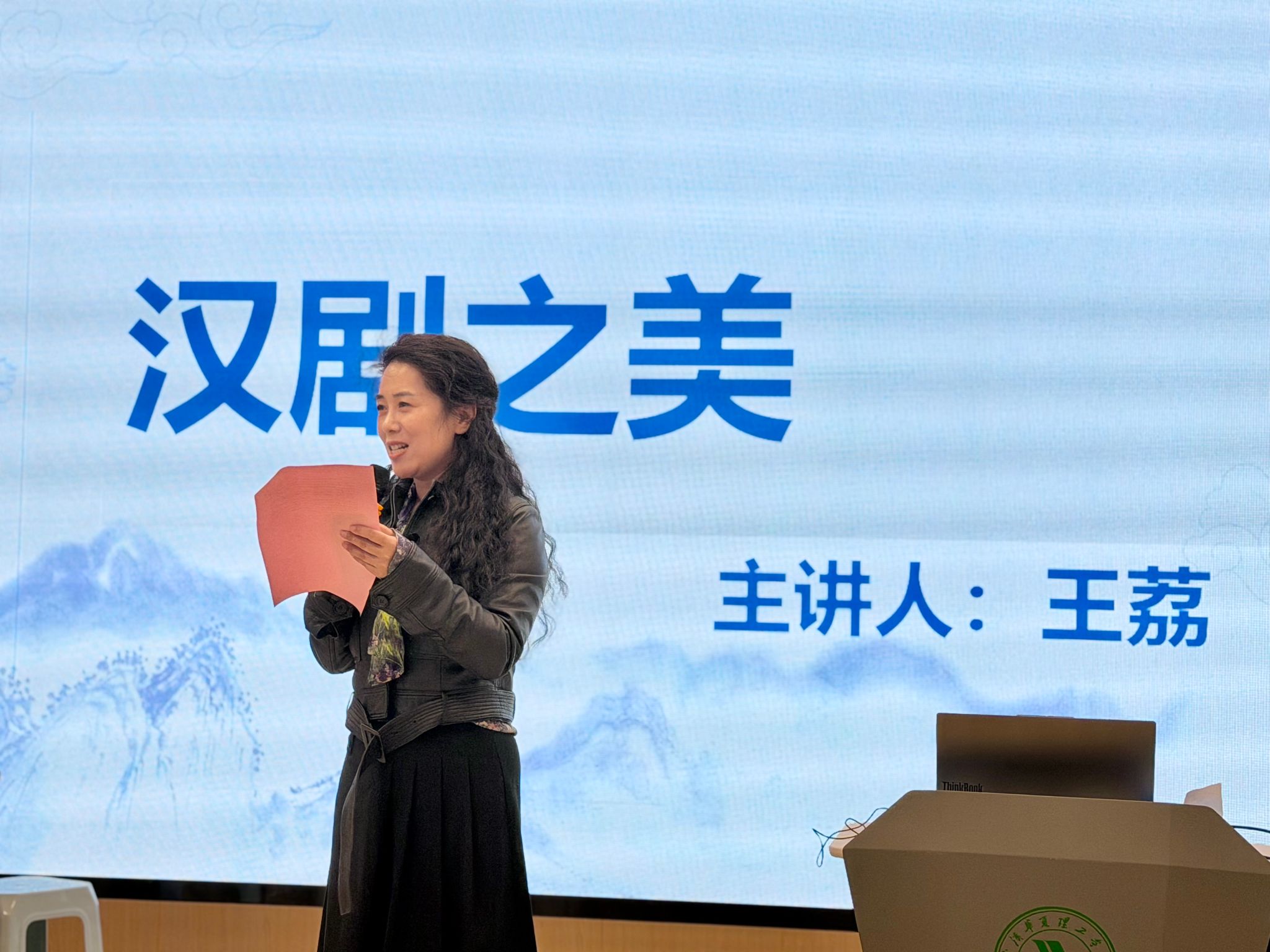 舞台之上,水袖轻扬,一颦一笑尽显千年风韵;讲台之间,深入浅出,一言一语道尽汉剧风流。11月14日,我校梧桐湖校区学术报告厅内,“汉剧之美”通识美育活动成功举行。中国戏剧梅花奖得主、国家一级演员、汉剧大师陈伯华第五代传人王荔受邀走进校园,为师生带来一场精彩的文化盛宴,并正式受聘为该校客座教授。