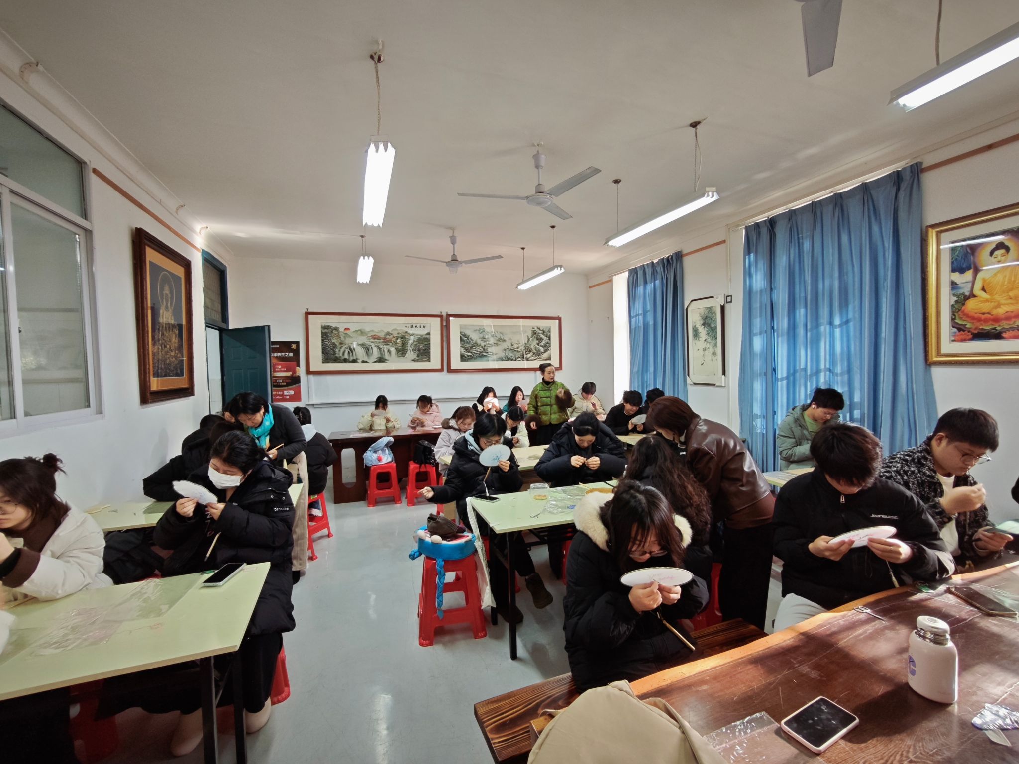 “以前只在博物馆见过汉绣,今天亲手绣上几针,才真正感受到这门手艺的温度与不易。”视传1251班马啸天感慨道。现场学习氛围浓厚,不少同学在掌握基本针法后,主动融入现代创意,为传统纹样注入个性化的表达。