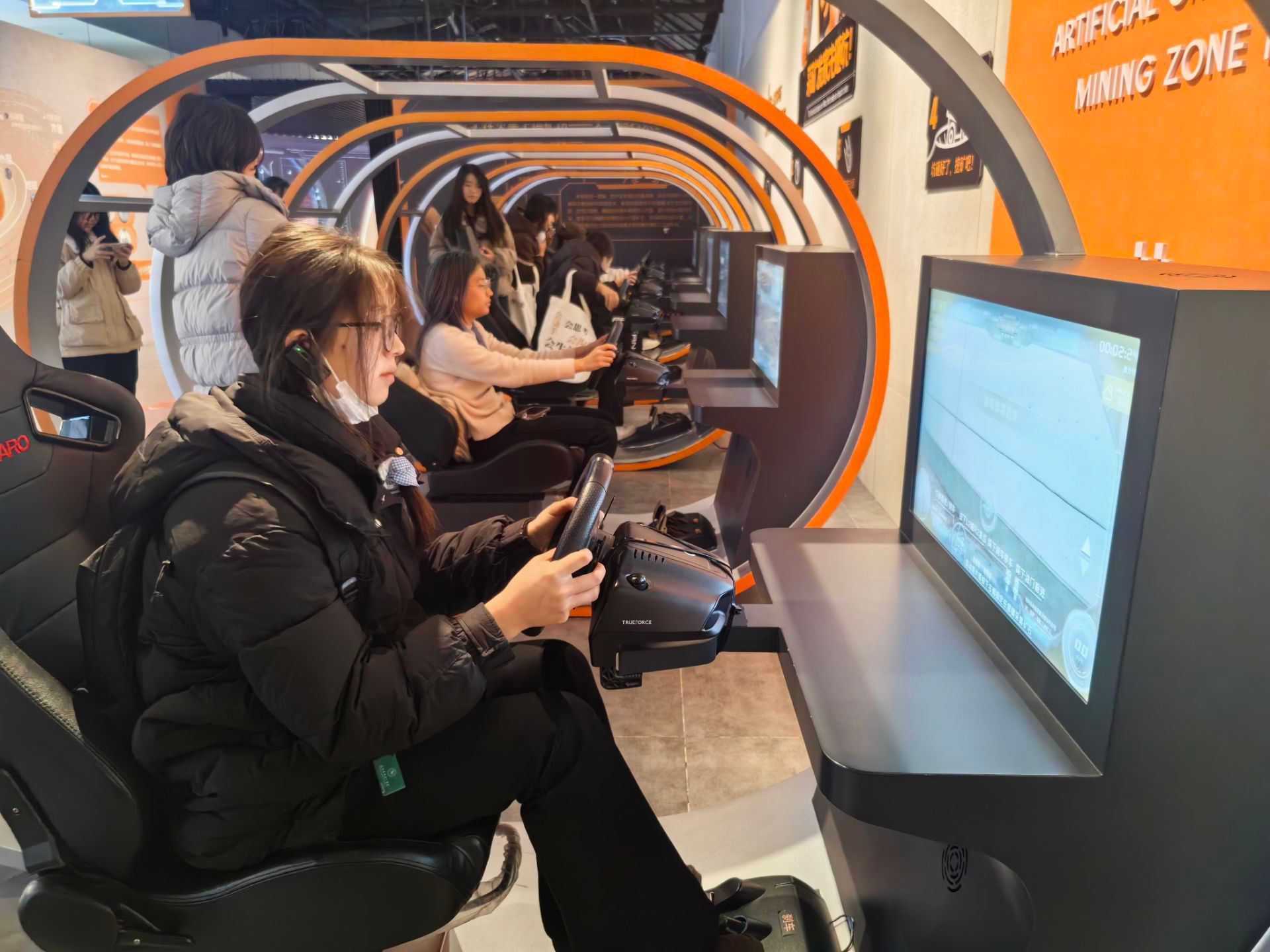 “火星是与地球最‘近’的行星…”活动伊始,在带队老师李茗和研学老师姚嘉仪的带领下,同学们开启了一场以“登陆-建设-开发-生活”为主线的火星之旅。大家穿越“星际之门”,踏入模拟火星地表,在互动中对比地球与火星的差异。通过虚拟建造、资源平衡游戏等,让同学们体验“火星建筑师”,亲手规划基地与农场。在沉浸式环幕影厅搭乘“观光飞船”后,亲手操控火星车模拟采矿,体验小行星探测任务。在科学互动中,了解如何改造火星磁场与土壤。