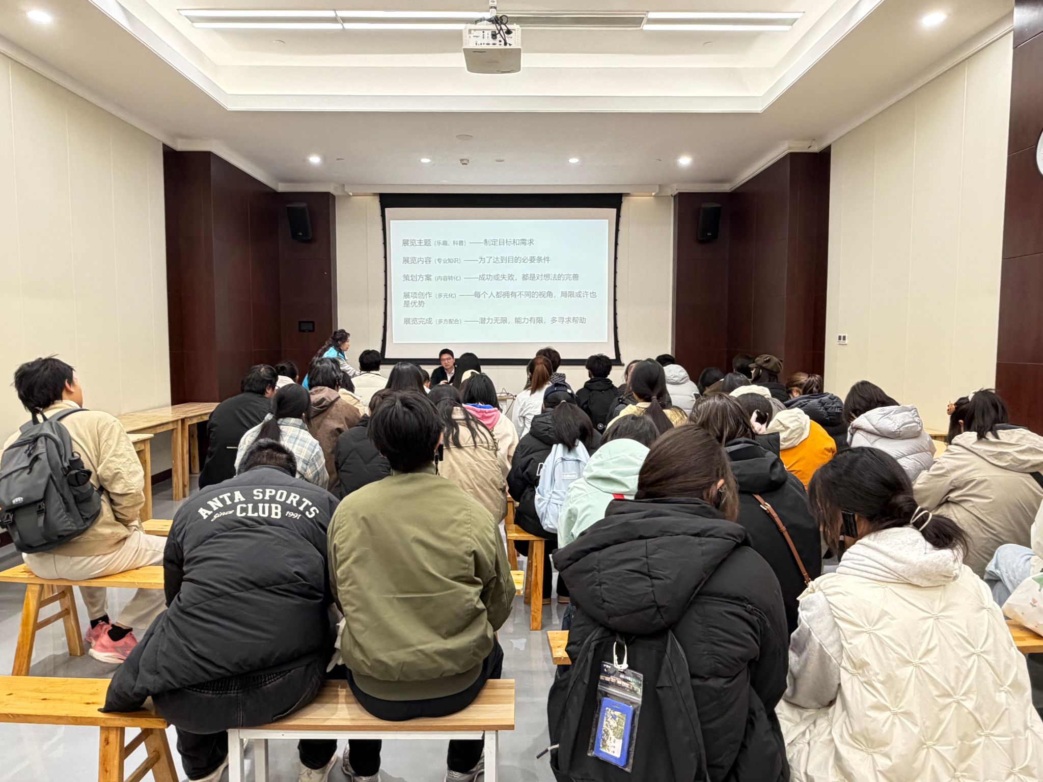 “展览的终点,其实是反思的起点。”紧接着,在匠心厅内举办了一场“策展人面对面”的专场分享会。中国建筑科技馆展览策划周俊老师通过设计手稿与初期概念图,生动讲述了如何将复杂的航天工程、天体物理和生态改造知识,转化为公众可感知、可互动、可共情的叙事体验。其中的每一个细节都历经了科学顾问团队的反复校验与艺术化打磨。在互动环节同学们纷纷踊跃提问,当问及展览的设计理念时,他表示,当观众因体验火星的荒凉而更珍惜地球的蔚蓝,当孩子们因搭建基地而萌生成为航天工程师的梦想,这便是此次展览设计的意义。
