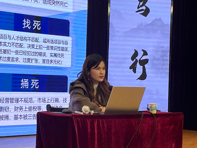 最后,她向大家介绍了私募股权投资运作的四个核心环节——“募”“投”“管”“退”。“企业核心价值是服务或产品满足客户需求的能力,让市场做判断,拒绝“伪需求”。”在讲到投资的基本逻辑时,她认为,在投资中,人永远排第一位,而且一个企业要想能持续发展的话,就必须有足够的竞争力和持续创新力。