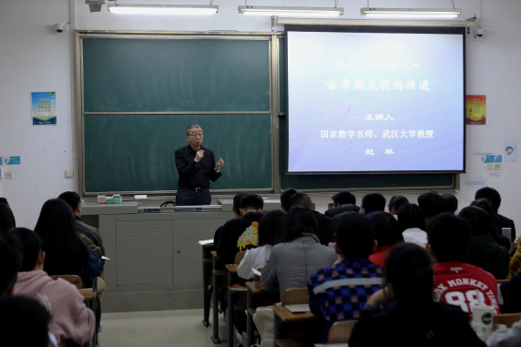 “西方文明追根溯源正是古希腊罗马文明。希腊人是仰望天空的民族,而罗马人则是俯卧大地的民族……”4月3日晚,我校通识教育示范课、国家教学名师、武大“名嘴”赵林教授主讲的《古希腊罗马文化》在1教108教室正式开讲。课上,赵林教授旁征博引,幽默诙谐,金句迭出,一百多座的教室座无虚席,教室后和过道都挤满了慕名前来听课的师生。当代教育集团总裁、我校董事李巍,常务副校长杜辉与全校百余名师生一道,认真聆听讲课。