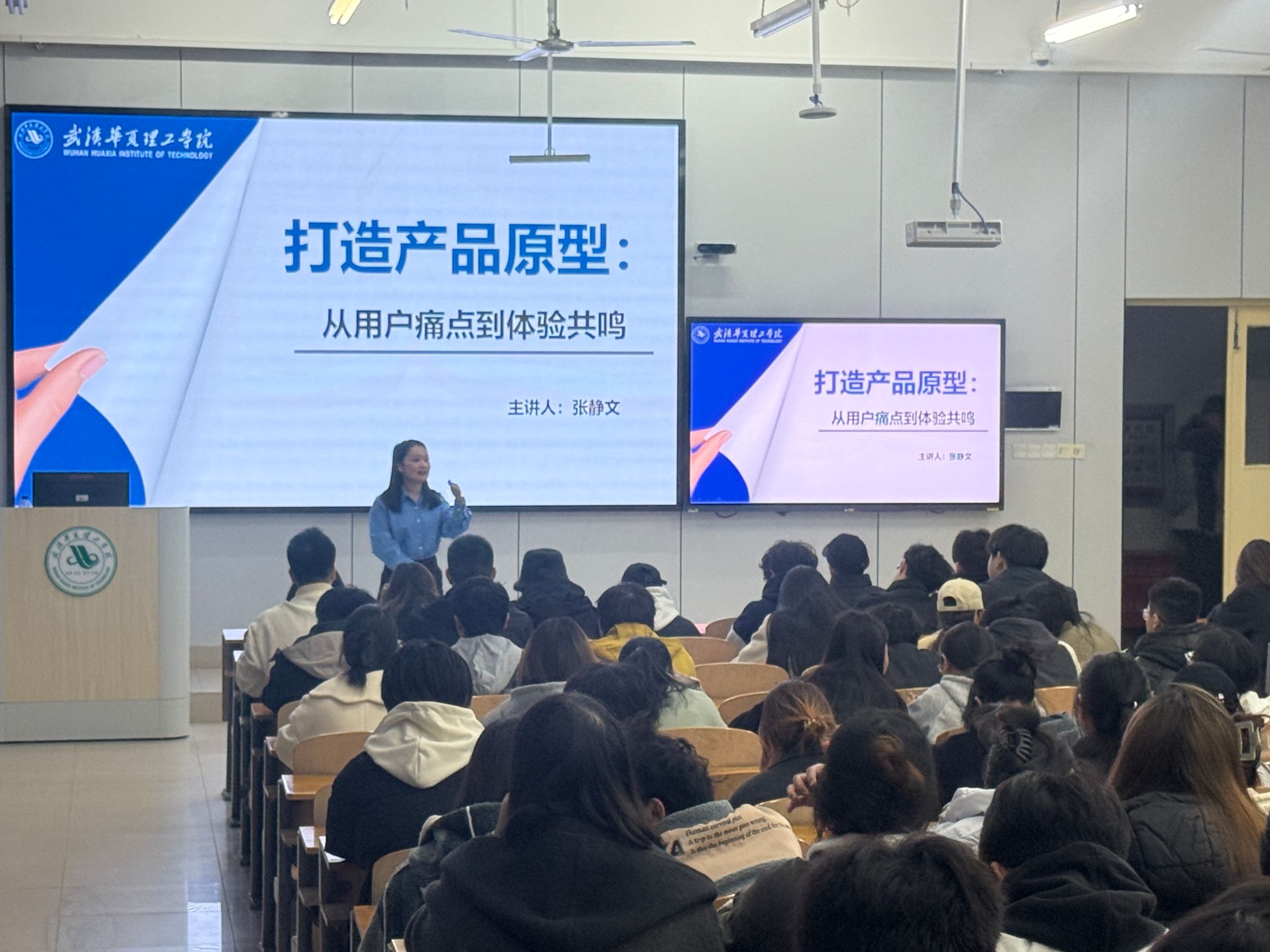 12月11日晚上18:00,为深化创新创业教育,提升学生产品设计与创新创业项目的核心竞争力,我校在2-101教室成功举办了主题为“从痛点洞察到体验共鸣:产品原型设计”的专题讲座,这也是我校第五十二期“华夏·创客汇”活动。活动邀请武汉中汉金磐投资有限公司合伙人、副总经理,大学生创新创业赛事国奖项目负责人、创新创业指导师张静文主讲,创新创业学院副院长胡少梦主持,各学院师生代表共计200余人参与讲座。