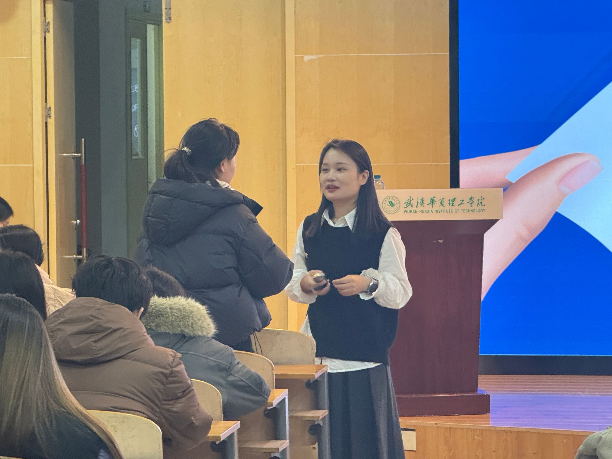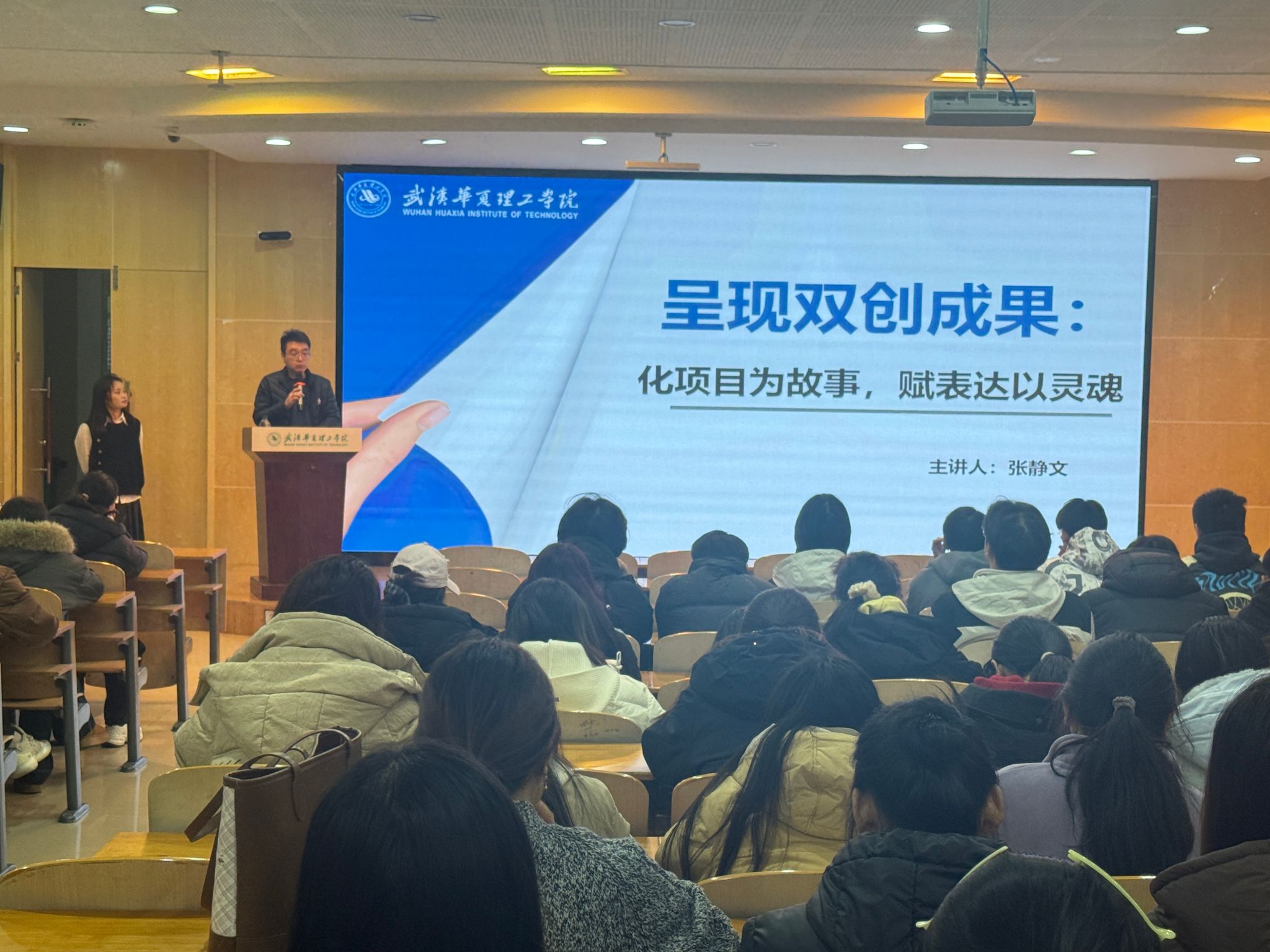 12月18日晚上18:00,为提升我校双创项目的表达力与感染力,我校在2-201教室成功举办了主题为“呈现双创成果:化项目为故事,赋表达以灵魂”的专题讲座,这也是我校第五十四期“华夏·创客汇”活动。讲座邀请武汉中汉金磐投资有限公司合伙人、副总经理,大学生创新创业赛事国奖项目负责人、创新创业指导师张静文主讲,创新创业学院副院长胡少梦主持,各学院师生代表共计200余人参与讲座。