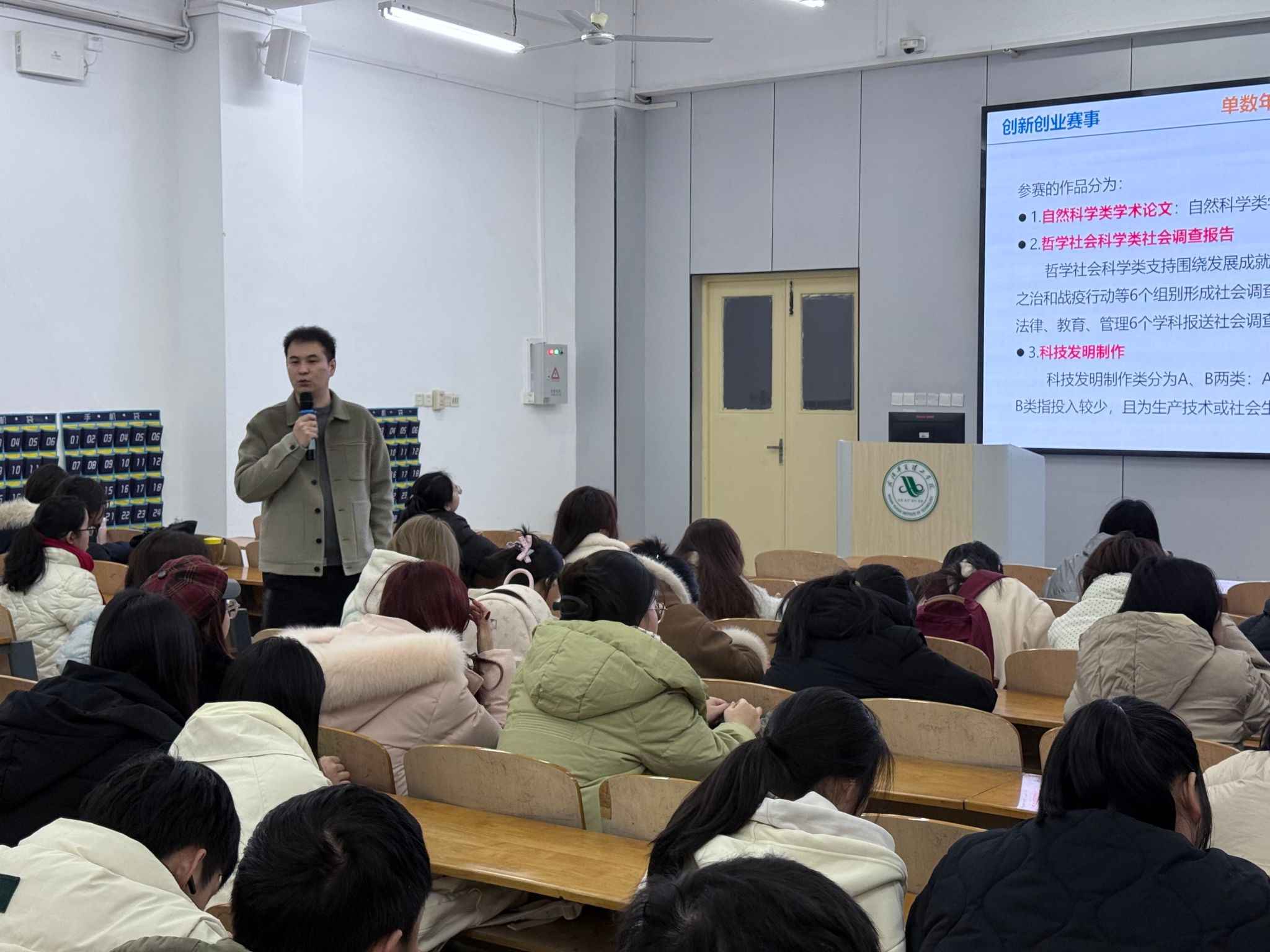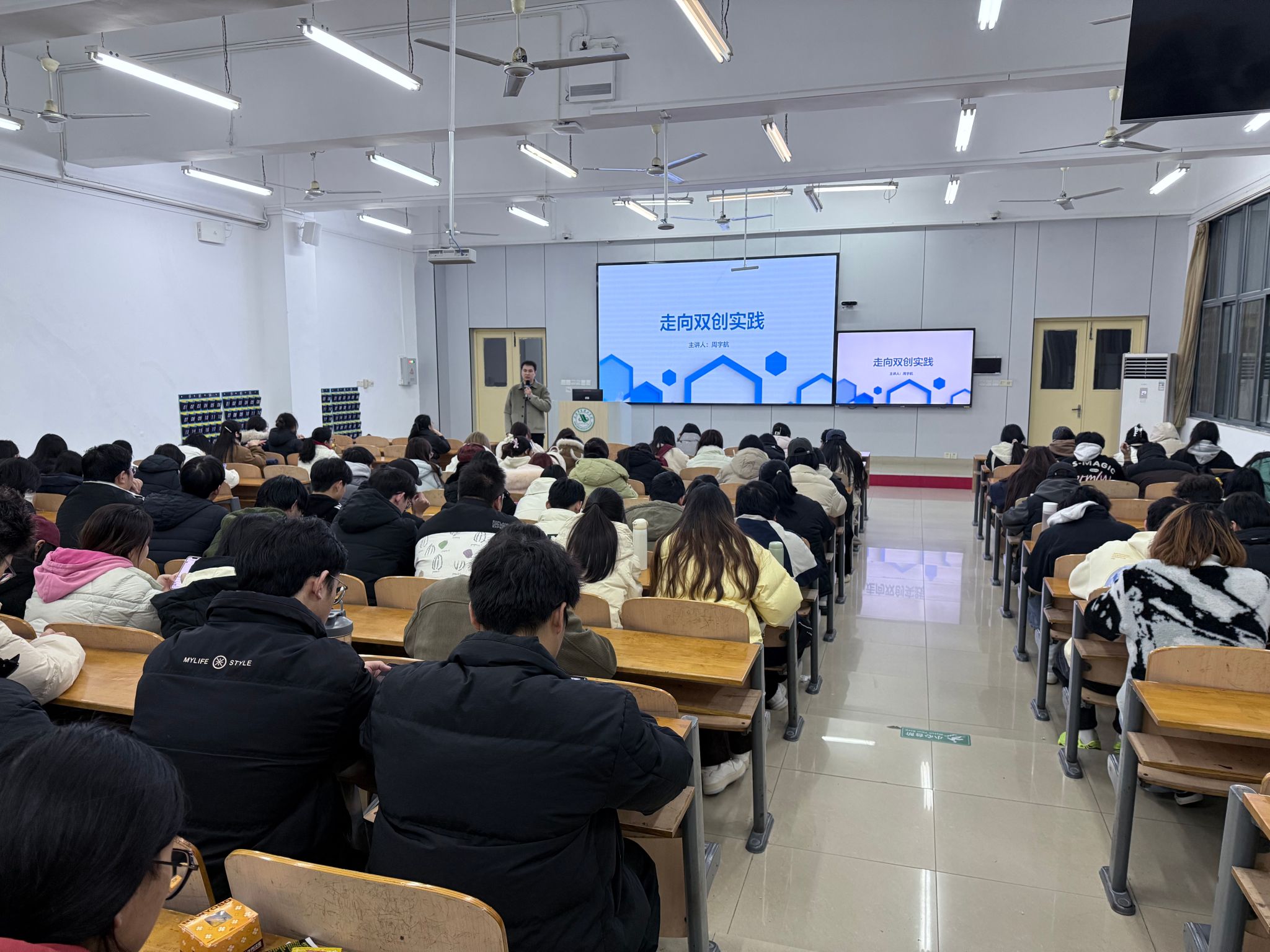 12月23日晚上18:00,为推动学生双创项目从竞赛场域走向真实市场与社会实践,我校在2-101教室成功举办了主题为“走向双创实践:越赛事疆界,入实践世界”的专题讲座,这也是我校第五十六期“华夏·创客汇”活动。本次讲座特邀武汉启明久远管理咨询有限公司副总经理,大学生创新创业赛事国奖项目负责人、创新创业赛事指导教师周宇航担任主讲嘉宾,各学院师生代表共计200余人参与讲座。