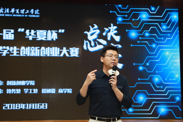 创新与时代同行, 创业携梦想齐飞。1月16日晚6点半,我校第一届“华夏杯”创新创业大赛总决赛在学术报告厅隆重举行。天风天睿副总经理陈实,深圳前海汉盈基金管理有限公司总经理任华,晟道投资CEO、投决会成员薛宇宁受邀担任评委。学校董事长张晓东,校长郭彪,常务副校长杜辉,副校长丁成忠,党委副书记、副校长李海民出席,各学院师生代表近700人现场观赛。比赛由校团委书记姚卓夫主持。