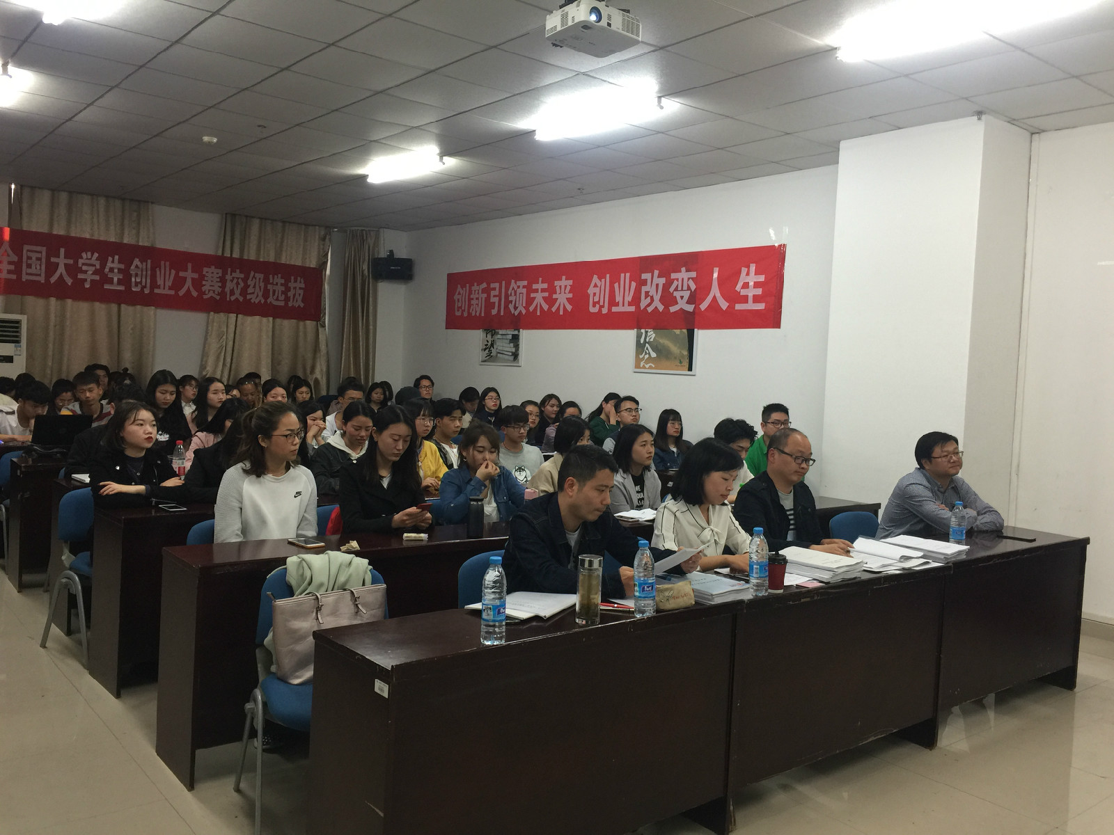 4月17日晚,校级选拔赛决赛在综合楼大学生事务中心拉开了帷幕。大赛特邀长盈传媒COO成瑶,就职于武汉东湖新技术开发区管委会负责东湖高新区双创平台建设、东湖国家双创基地建设的国家级创新创业导师周星,我校商学院国家级创新创业导师、工业与信息化部创新创业导师嵇毅老师担任此次评委。创新创业学院常务副院长李凯、校团委书记姚卓夫观看了比赛。