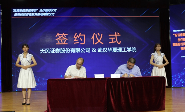 天风证券总裁张军在致辞中表示,天风证券作为总部位于湖北武汉的全国性券商,也是资本市场重要的中介机构,恪尽职守地做好投资者教育与服务工作,是天风证券的使命。接下来,天风证券还将通过开展持续性的投资者教育科普讲座,合作建立高校学生金融实习基地等方式,加大高校投资者教育资源投入力度,以切实增强高校学生群体的投资风险意识及金融理财能力。