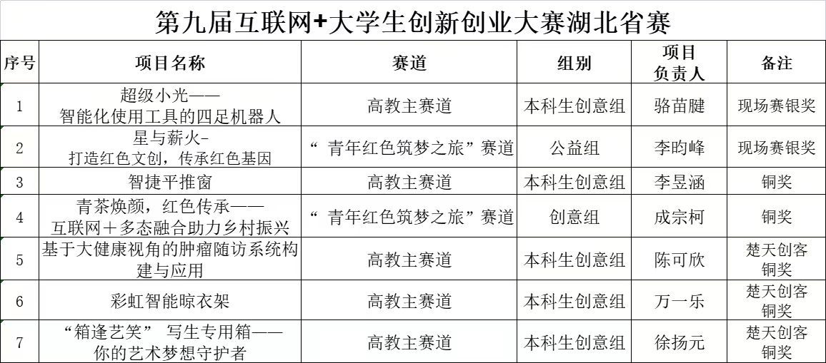 7月29日,“建行杯”第九届中国国际“互联网+”大学生创新创业大赛湖北省复赛现场赛在湖北工业大学盛大开幕。在408个现场赛项目的激烈比拼中,我校学生凭借过硬的专业实力和扎实的理论基础,荣获2银2铜的好成绩,另有3个项目获得“建行杯”第六届“我梦见-楚天创客”大赛铜奖。