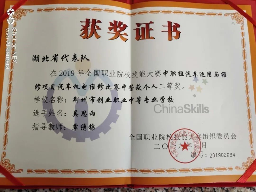 “汽车运用与维修大赛”中荣获湖北省冠军