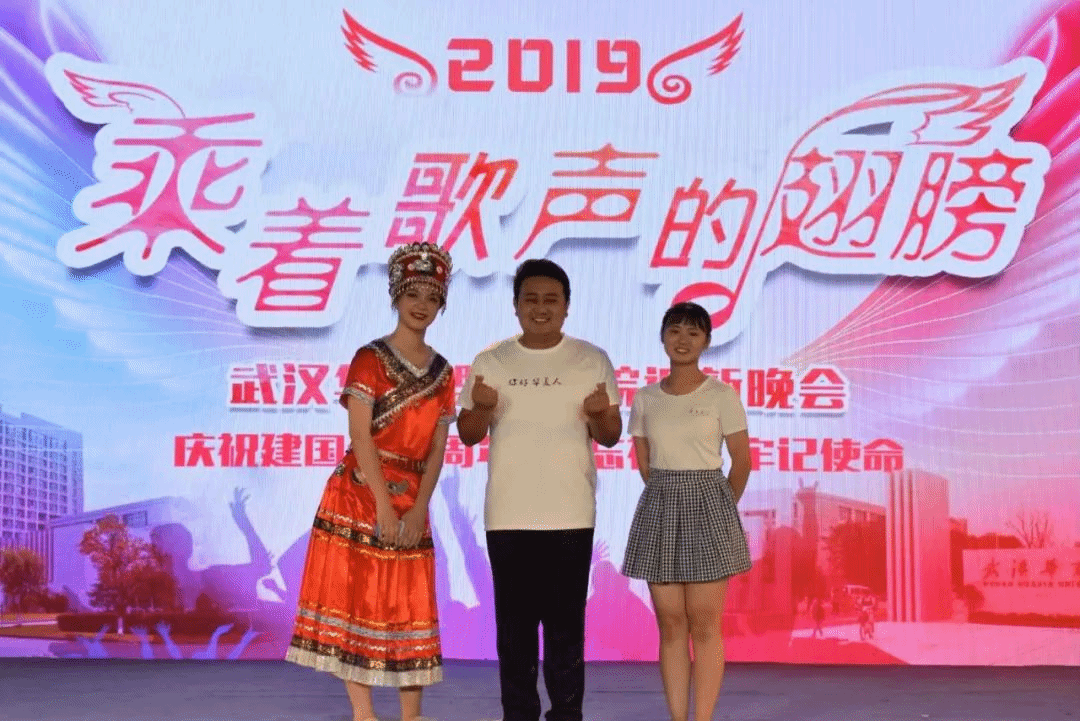 作为艺术团团长带领学弟学妹们布置晚会(右三)