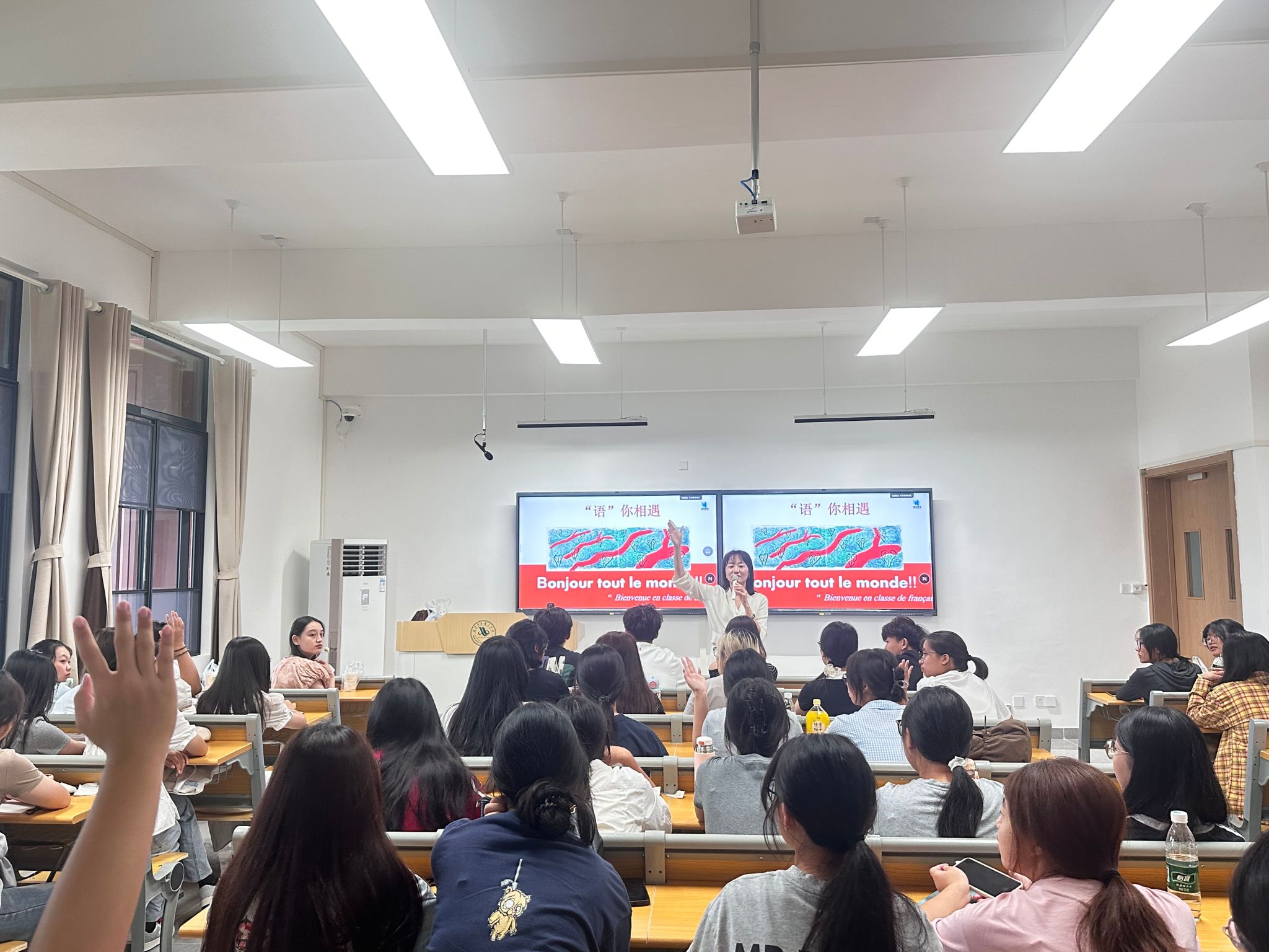 活动特别邀请武汉海言美语公司的专业人士作为主讲嘉宾,以“了解语言艺术,规划美好未来”为主题,旨在激发新生对第二外国语学习的热情,拓宽其国际视野,提升跨文化交流能力。主讲嘉宾凭借深厚的学识、风趣幽默的语言和丰富的实践经验,从多个维度展开了一场精彩绝伦的演讲。