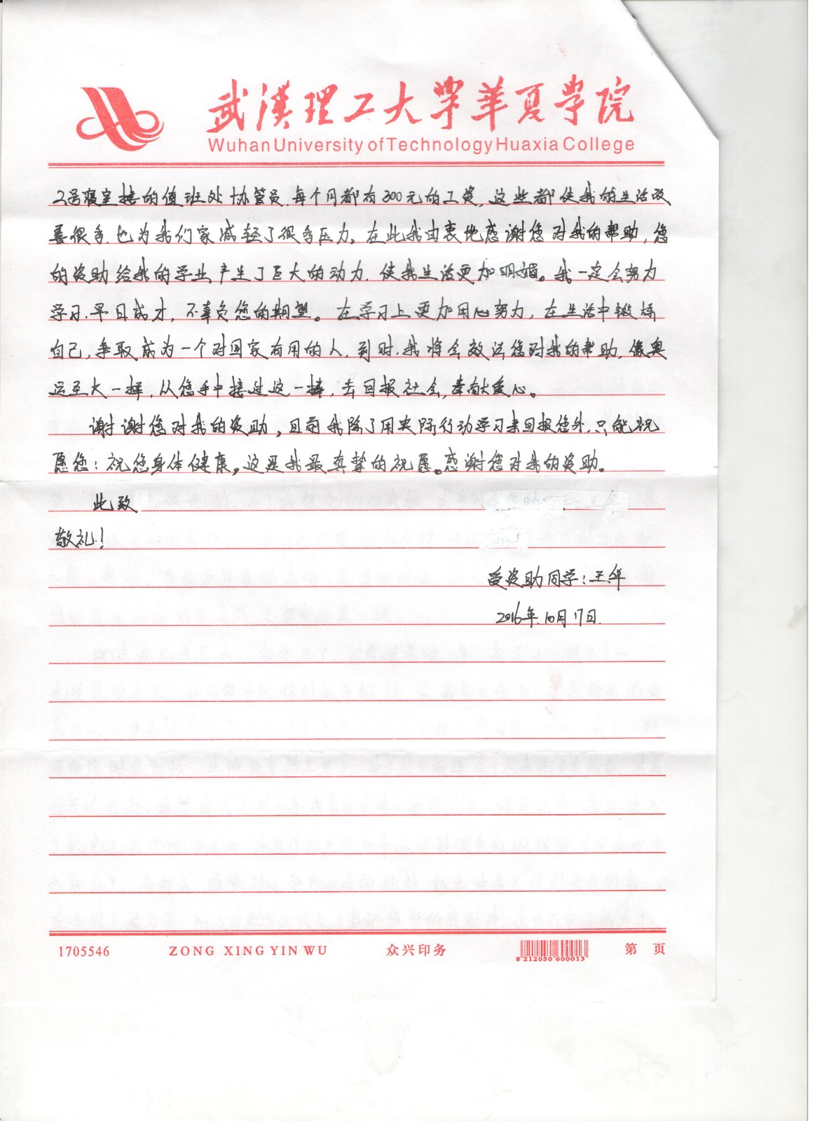 外语学院学子的感谢信