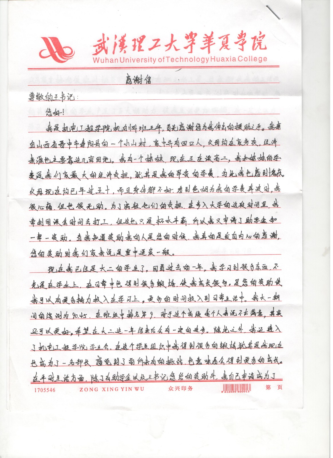 机电工程学院学子的感谢信