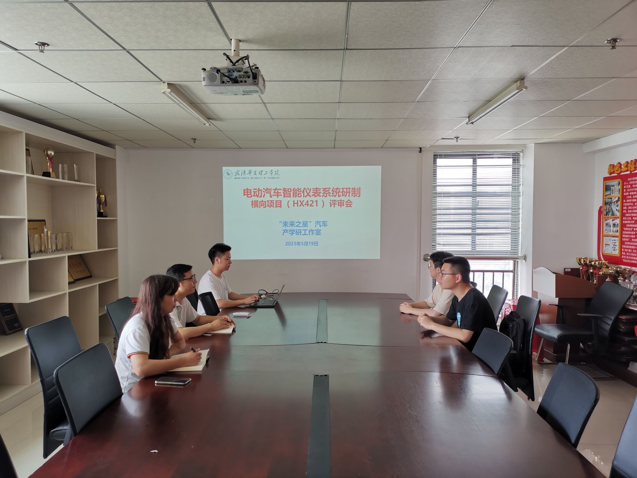 2023年5月19日,“未来之星”汽车产学研工作室于综合楼919会议室召开会议。智能制造学院副院长吴焕芹老师、未来之星汽车产学研工作室指导教师冯理、刘俊和学生成员杨晨、陈旭东、郑胜苑参加会议。