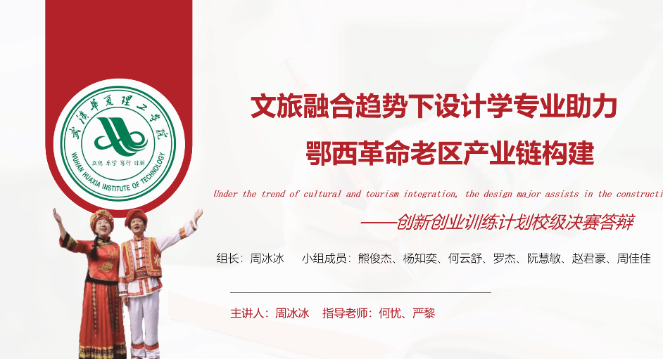2023年6月2日,我工作室主持参与的项目《文旅融合趋势下设计学专业助力鄂西革命老区产业链构建》入围了“2023年大学生创新创业训练计划竞赛校级选拔决赛”项目。团队指导老师何忧利用第二课堂时间,为同学们进行了赛事辅导。