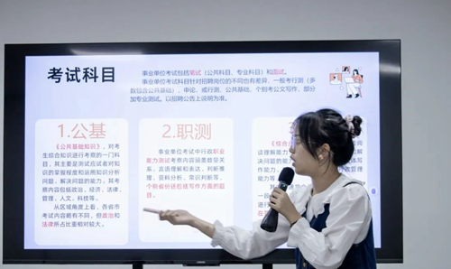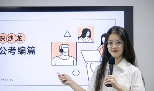 首先由曹逸阳从工作性质,报考门槛,考察内容,晋升渠道,薪资待遇等五个方面介绍考公和考编的区别。然后由廖优和向贻锦分别为大家介绍了关于公务员考试和事业编考试的相关报考常识并推荐了自身使用效果不错的学习软件和公众号。