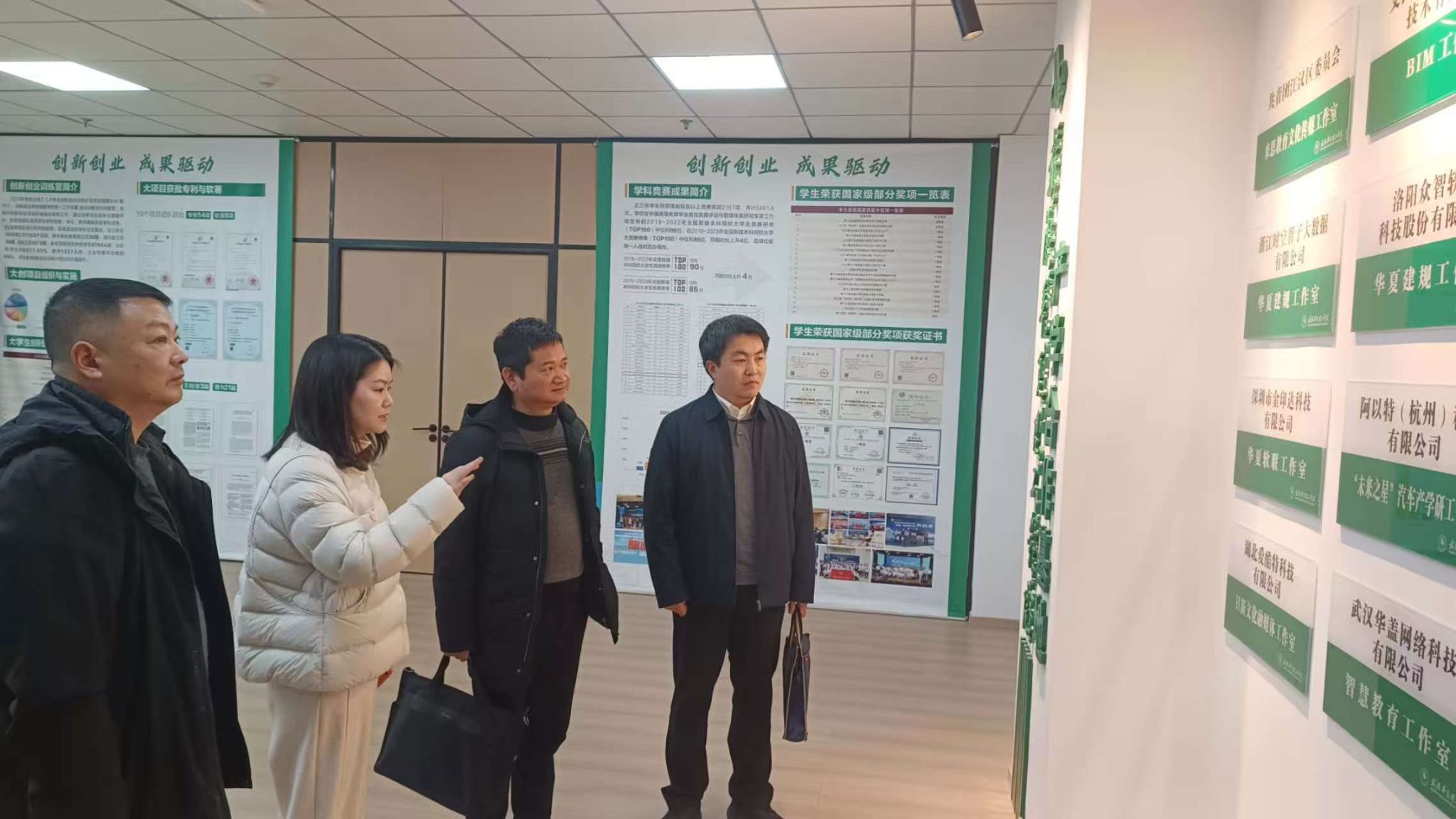 最后,张城芳部长、艺术学院副院长邓婧、信息学院副院长王绪梅分别带领沙洋县领导一行参观了学校产学研名师工作室、艺术展馆、华为-华夏人工智能现代产业学院,得到了沙洋县领导们的一致好评。