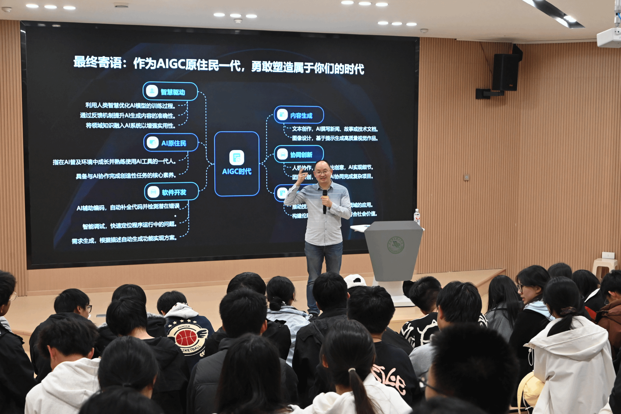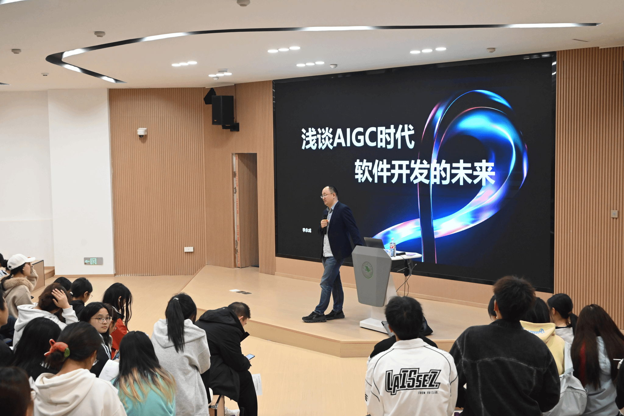 在案例分享环节,李永成导师结合自身丰富的行业实践经验,详细解析了AIGC在代码自动生成、缺陷智能预测、自动化测试平台构建与智能运维系统搭建等方面的具体应用。他特别强调,随着AIGC技术的深度应用,软件开发者的角色定位正在发生根本性转变——从传统的"代码工匠"逐步升级为统筹规划的"AI指挥官"。在这一转变过程中,除了需要掌握扎实的技术功底,沟通协作能力、系统思维能力、产品意识与工程素养等软实力显得愈发重要。他鼓励在场学生要主动拥抱技术变革,积极拓展跨学科知识视野,着力培养与人工智能系统协同工作的能力,为适应未来"人机协同"的新型开发模式做好充分准备。
