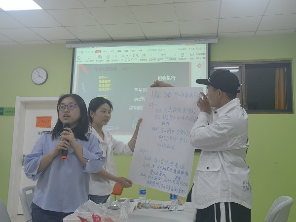 第三个专题由中南财经政法大学心理协会团队负责人余金聪副教授和中心的刘轶老师一起讲授《辅导员如何办好心理主题班会》。余老师向各位辅导员展示了一堂主题鲜明、内容丰富的心理主题班会应具备的要素。随后,余老师和刘老师从大学生最关心的话题出发,提出心理主题班会活动设计的步骤和知识技能储备,并采用翻转课堂的方式,请各位辅导员老师分组筹划心理主题班会的活动方案,并进行展示。在辅导员们讨论、展示和后期答疑的过程中,余老师和刘老师进行针对性指导,并提供参考书籍和视频资料,帮助老师们接下来不断完善教案,形成实操性强的活动方案。