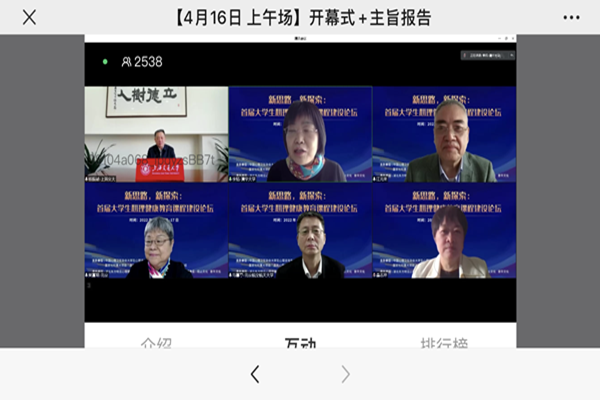 4月16-17日,综合素质教育课部心理健康课程组组织授课教师线上参加首届大学生心理健康教育课程建设论坛学习,这次论坛由中国心理卫生协会大学生心理咨询专业委员会主办,湖北东方明见心理健康研究所承办。