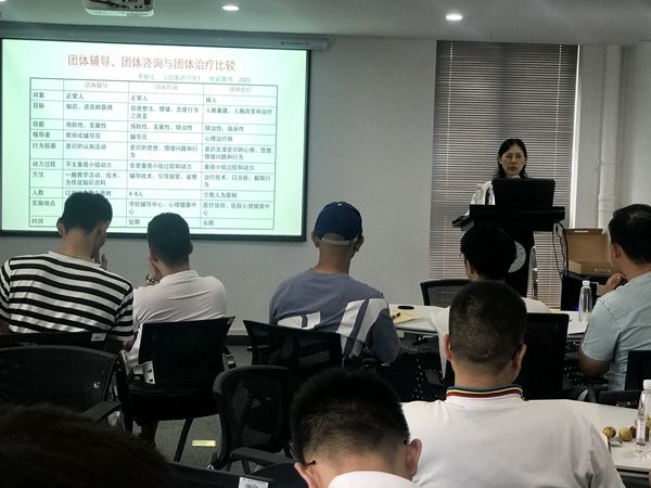 接下来,郭兰教授围绕团体心理辅导的理论基础进行讲授,内容包括团体辅导的理论基础、概念、应用领域、主要类型,以及团体辅导与团体咨询、团体治疗的区别等方面。同时,郭老师针对团体辅导的功能及设计流程进行了详细的介绍,并运用具体的案例向辅导员们介绍了团体辅导的设计原则及作用。