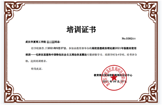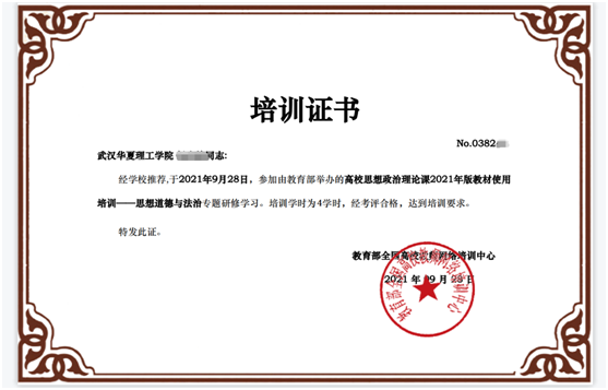 我院高度重视此次培训工作,学院指派专人负责,认真组织全体任课教师参加培训,并要求参训教师认真研读教材,在规定时间完成线上培训学时,并参加培训测试获得合格证书,确保培训效果。