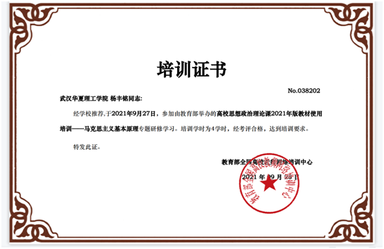 通过此次培训,我院思政课教师在最短的时间内熟悉新教材,吃准吃透新教材内容,为讲好思想政治理论课2021年版教材奠定了坚实基础。参训教师一致认为此次培训针对性强,实用性高,对提升自身的教育教学水平,上好思政课,大家收获颇丰,进一步开拓了思政课教师的视野,提升了理论素养。