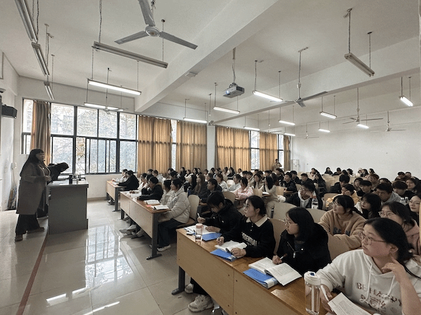 盛蕾老师课前教学资料准备充分,课中教态大方、语言流畅、声音高昂、富有激情,将理论与实际紧密结合,与学生互动充分,教学形式丰富多样,包括了翻转课堂、诗词朗诵等。同学们聚精会神听讲,积极回答老师提出的问题,课堂秩序井然有序。