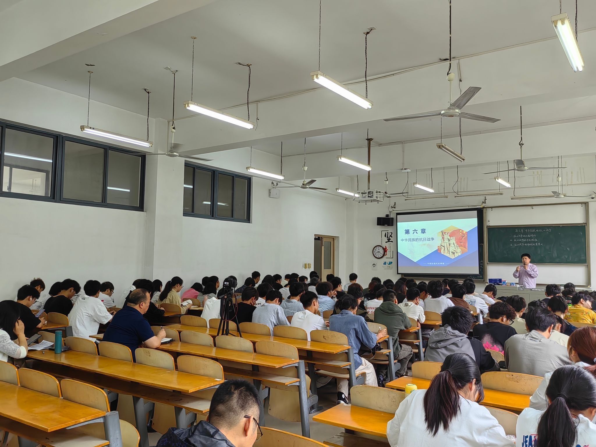 此次公开课的教学内容为“中华民族的抗日战争”。授课对象为2023级大数据和自动化专业学生。吴老师在授课伊始要求学生参照中国地图,便于理解抗战时期的军事作战及其战略战术,其教学形式别具一格,别开生面——采用对比国共两党抗战路线的不同展开教学,具有理论深度和高校思政课的热度。讲课中通过穿插案例、播放短视频等多种方式,教学手段丰富。吴老师的精彩讲授,使课堂气氛活跃,是一堂精彩的公开课。